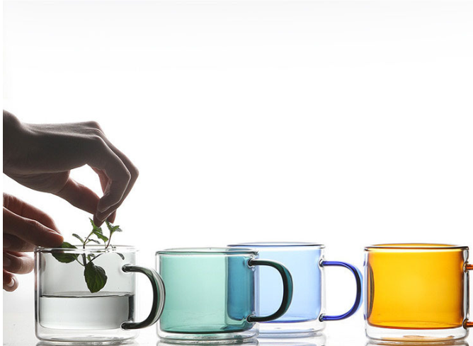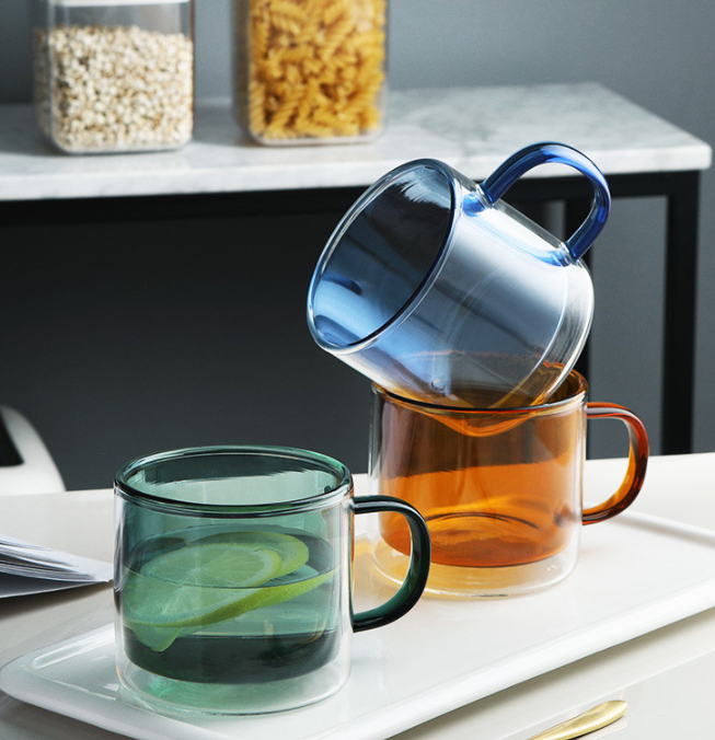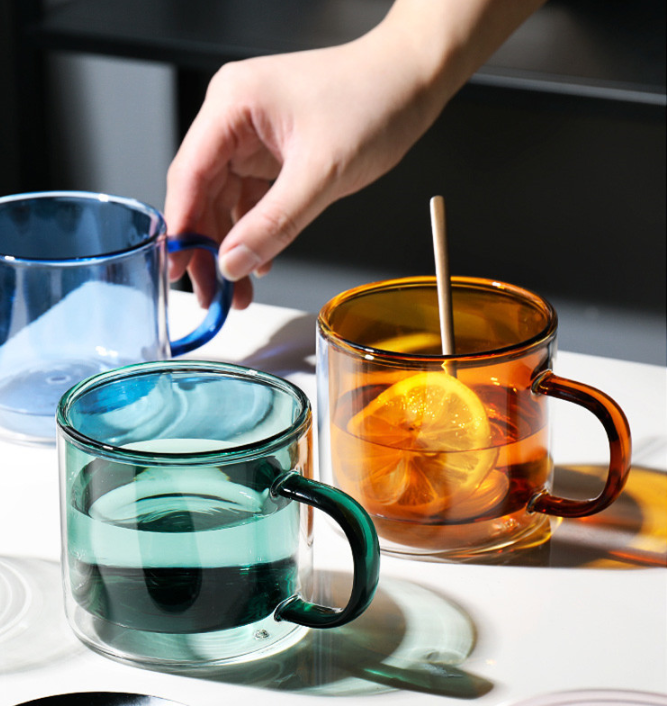Custom colored glass double glass home glass colored cup office coffee milk cup office juice cup