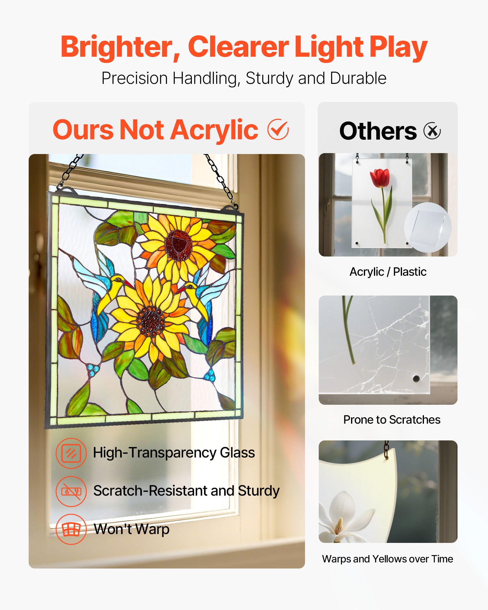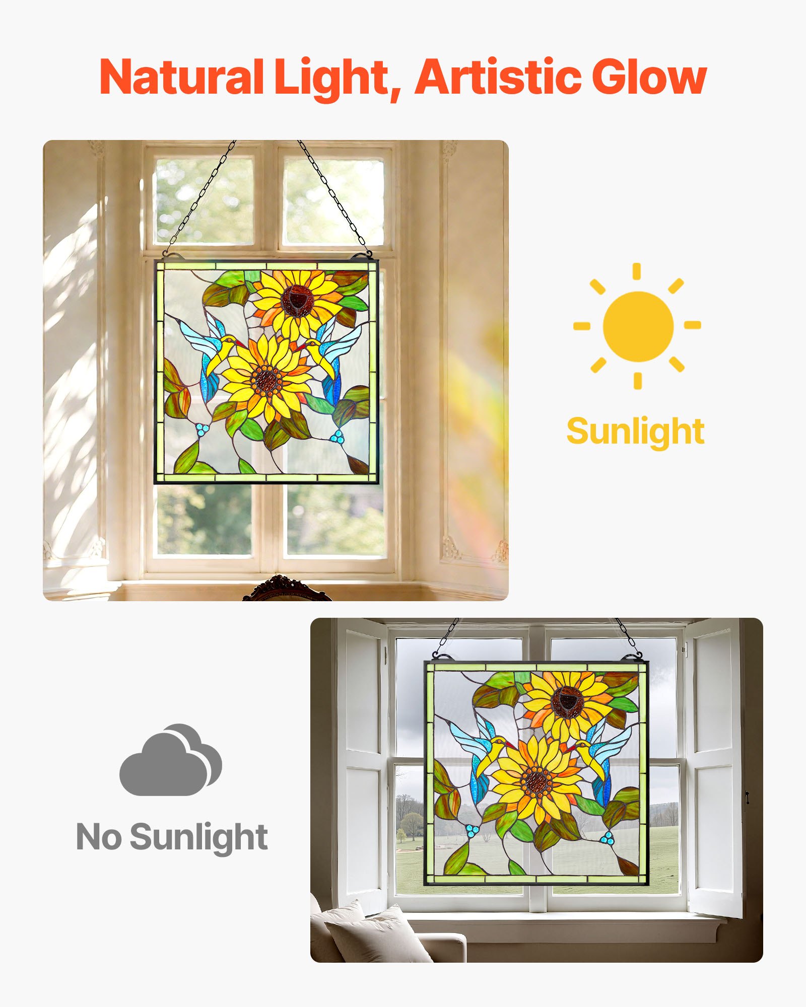 Lasting Color Brilliance: Crafted with a mix of traditional techniques and modern technology, our hanging stained glass panel resists fading from sunlight or cleaning. The smooth glass edges and sturdy joints ensure beauty and durability