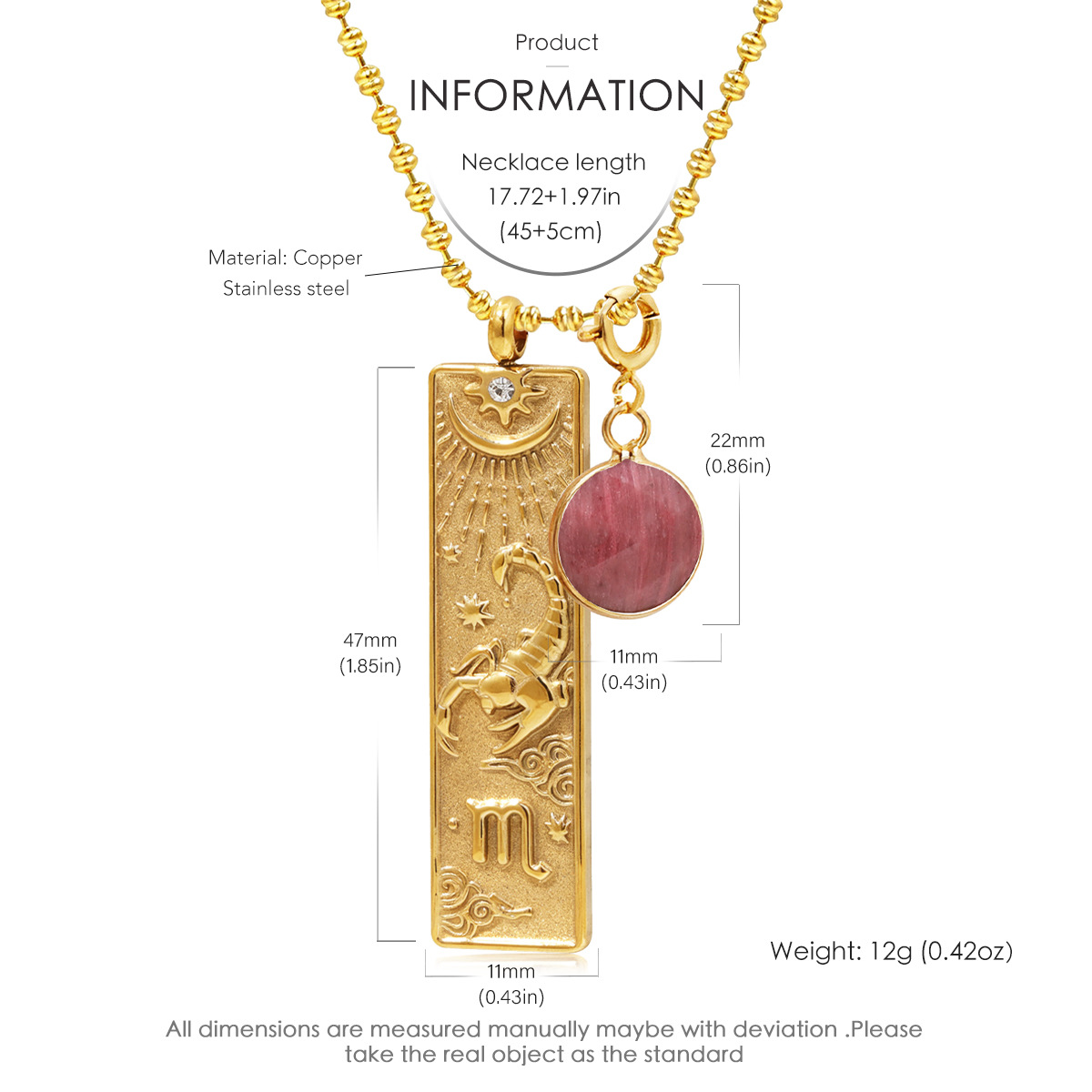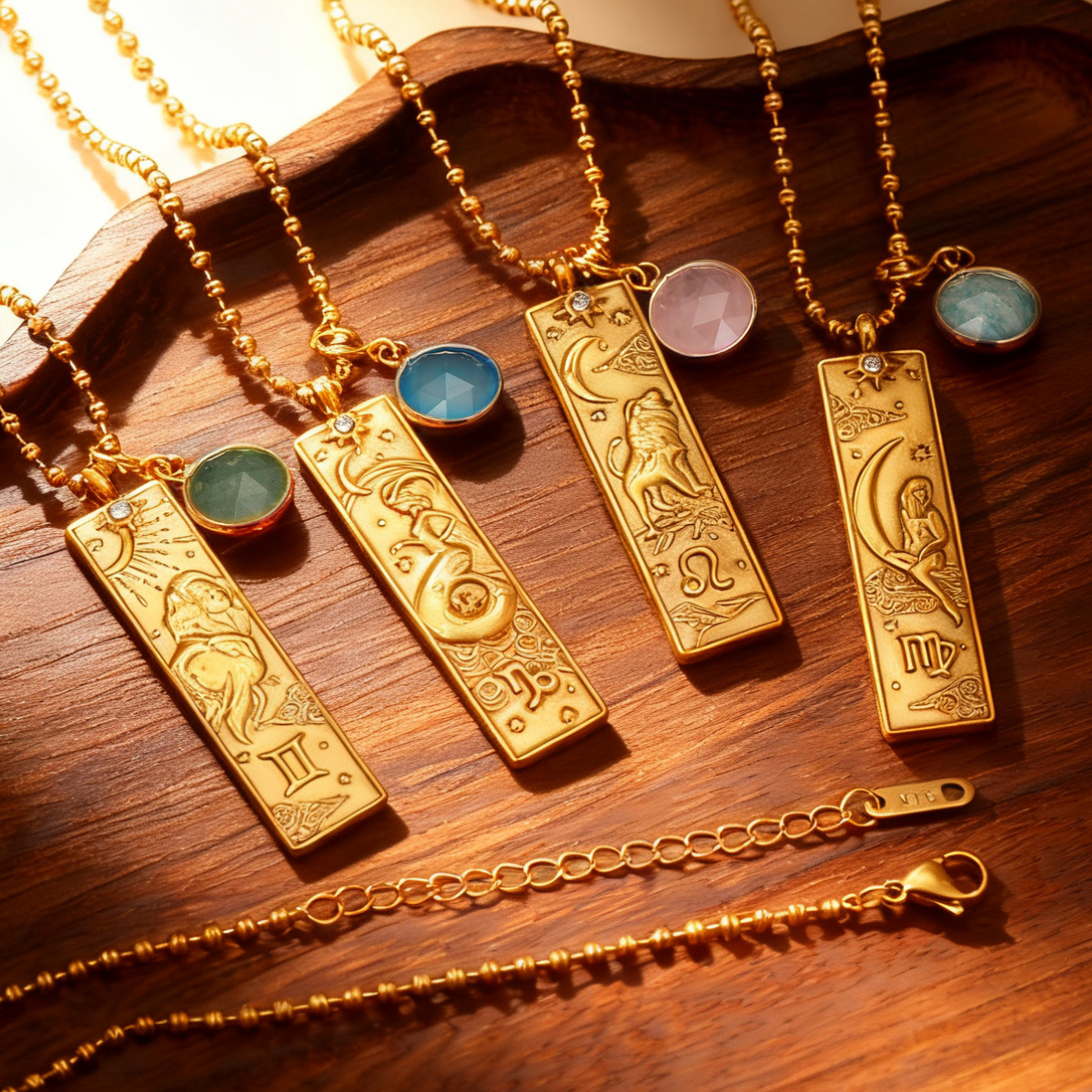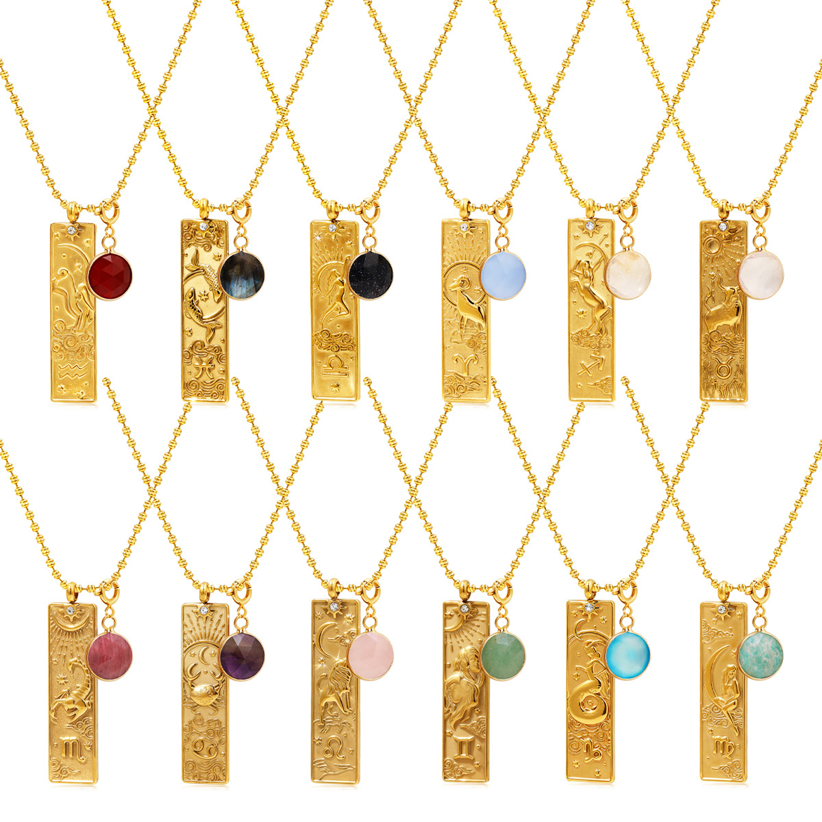 Stainless Steel 18K Gold Plated Square Brand Zodiac Birthstone Necklace