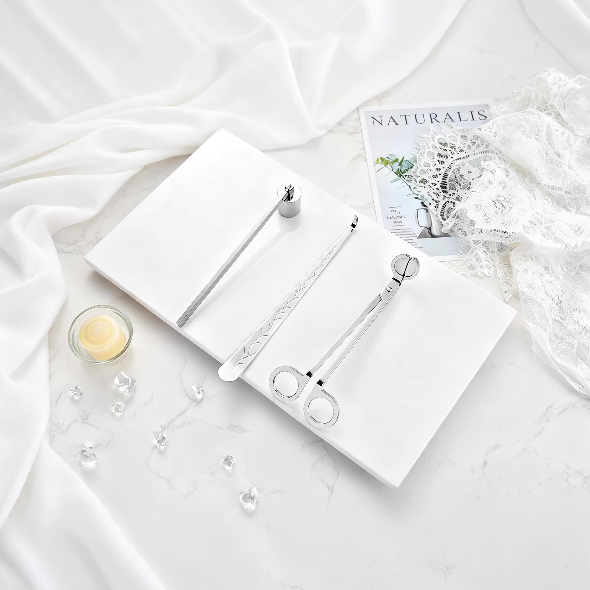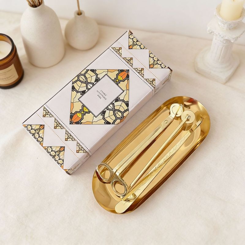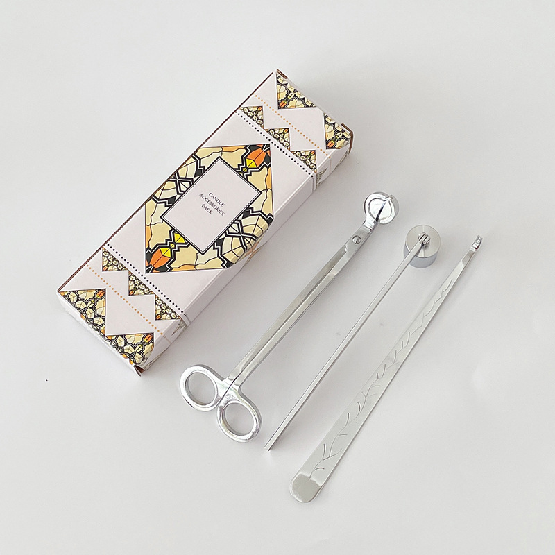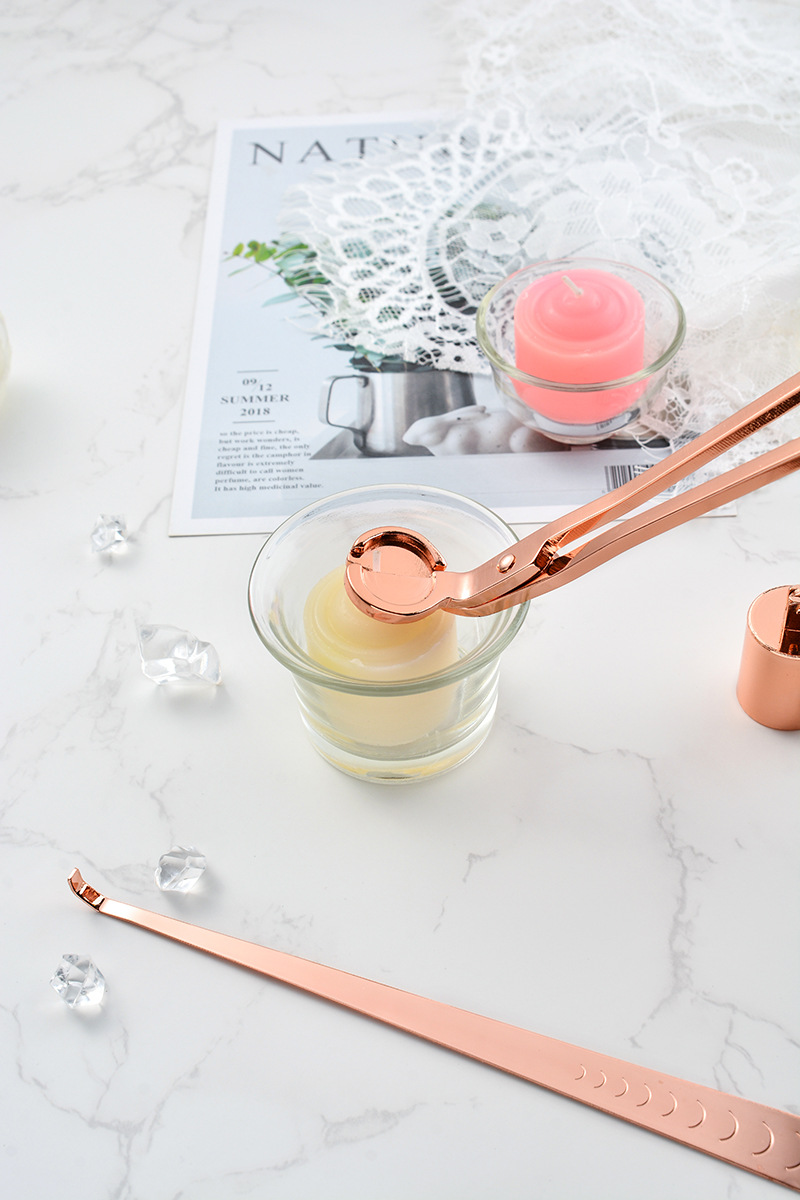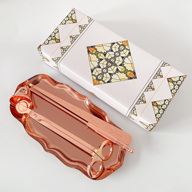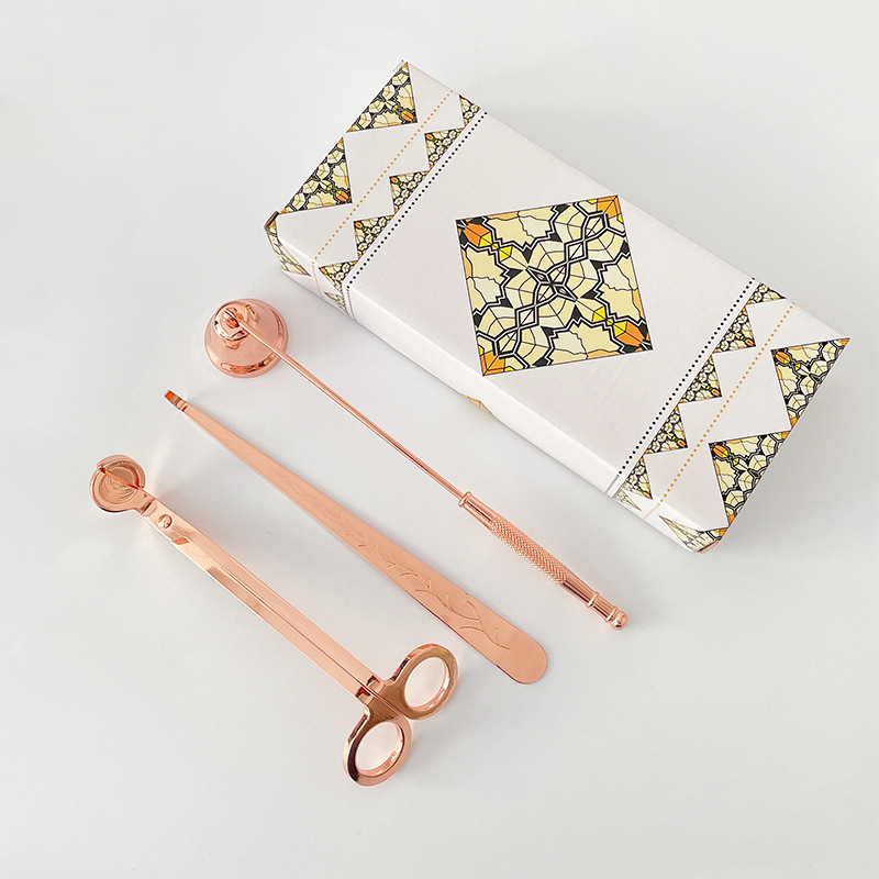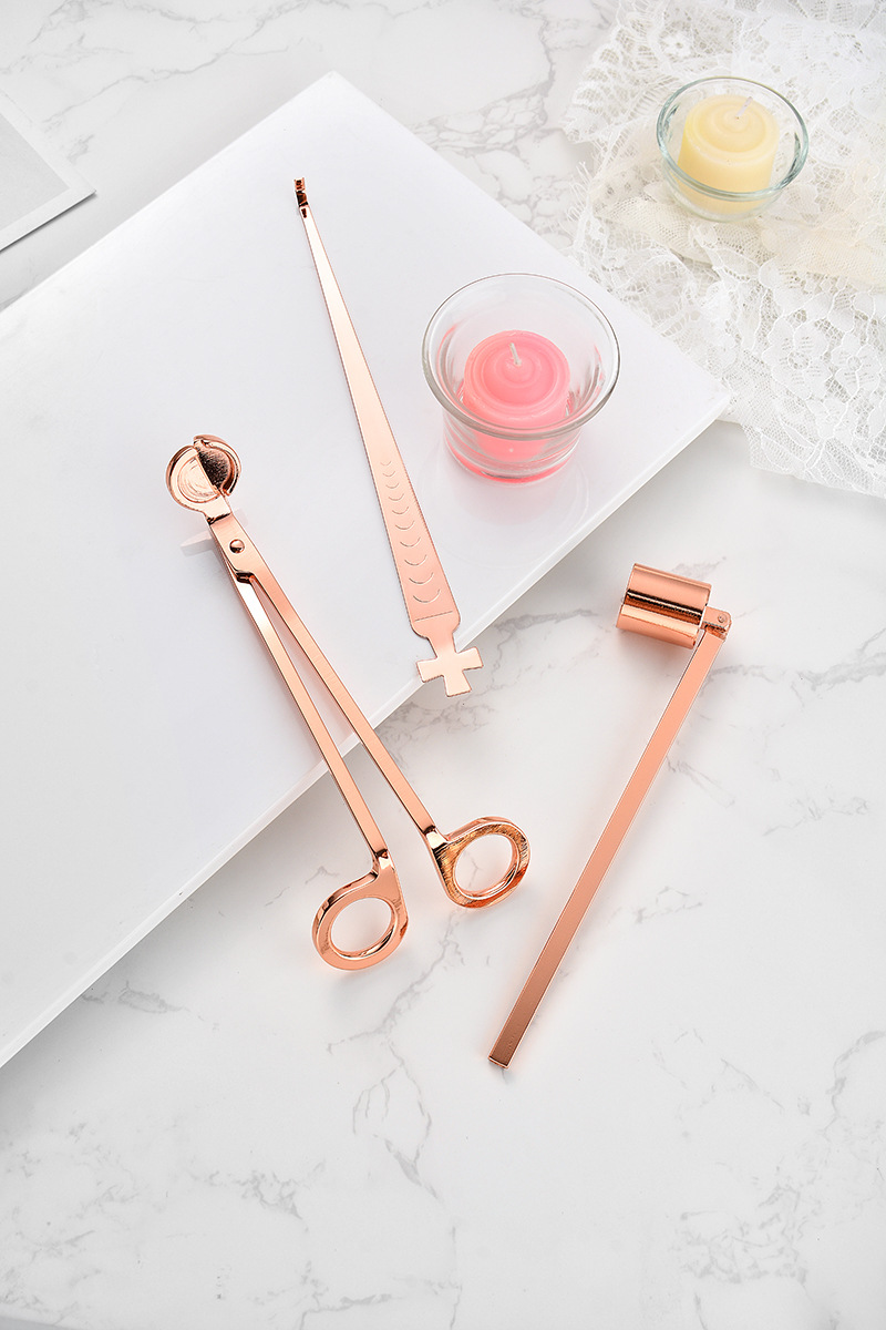 Specifications: Large candle tool three-piece set + color box (rose gold), large candle tool three-piece set + color box (gold), large candle tool three-piece set + color box (black), large candle tool three-piece set + color box (silver)