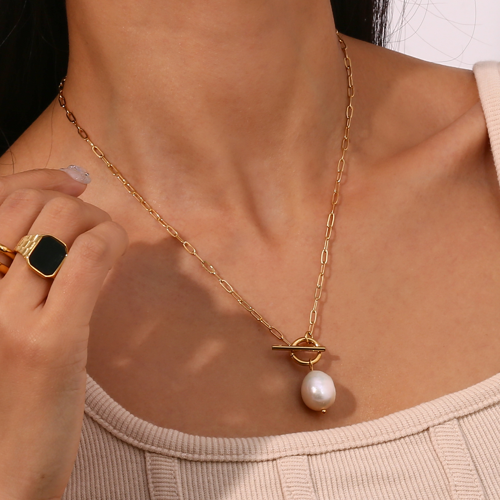 Color: Baroque Freshwater Pearl Paperclip Chain Necklace