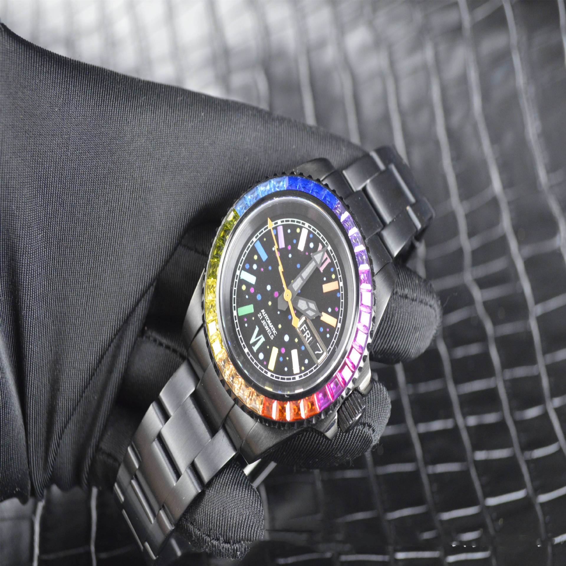 Stainless Steel Black Colored Diamond Fully Automatic Mechanical Watch