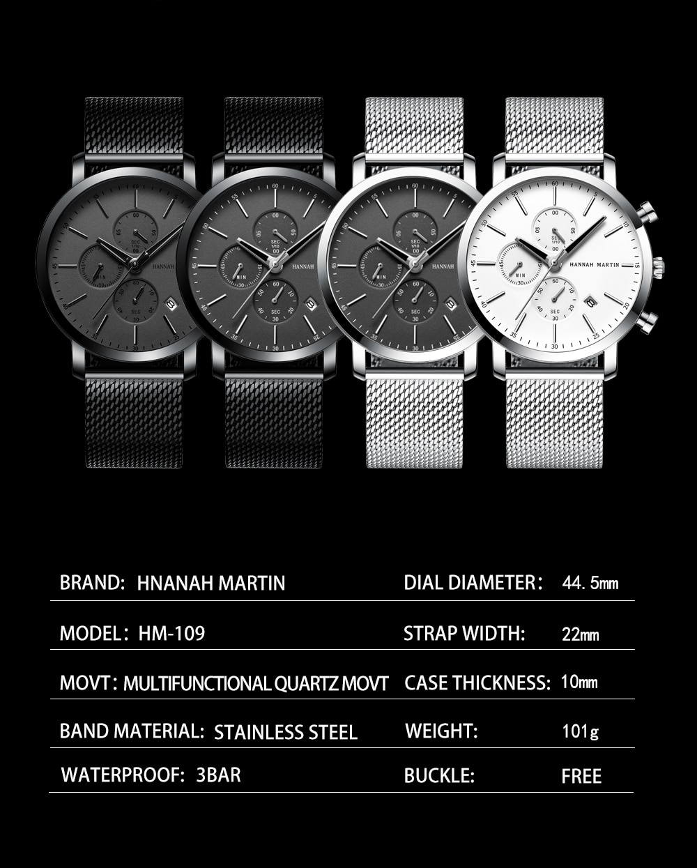 Strap material: stainless steel