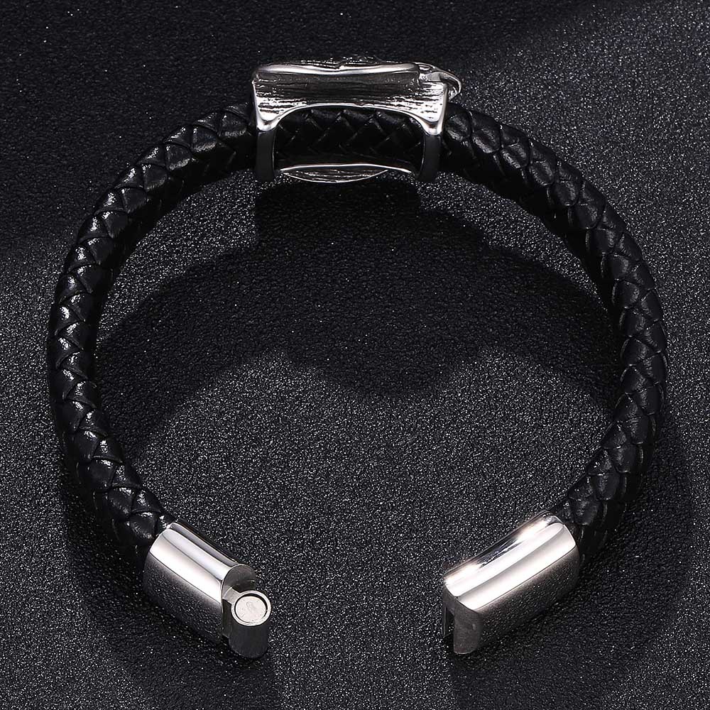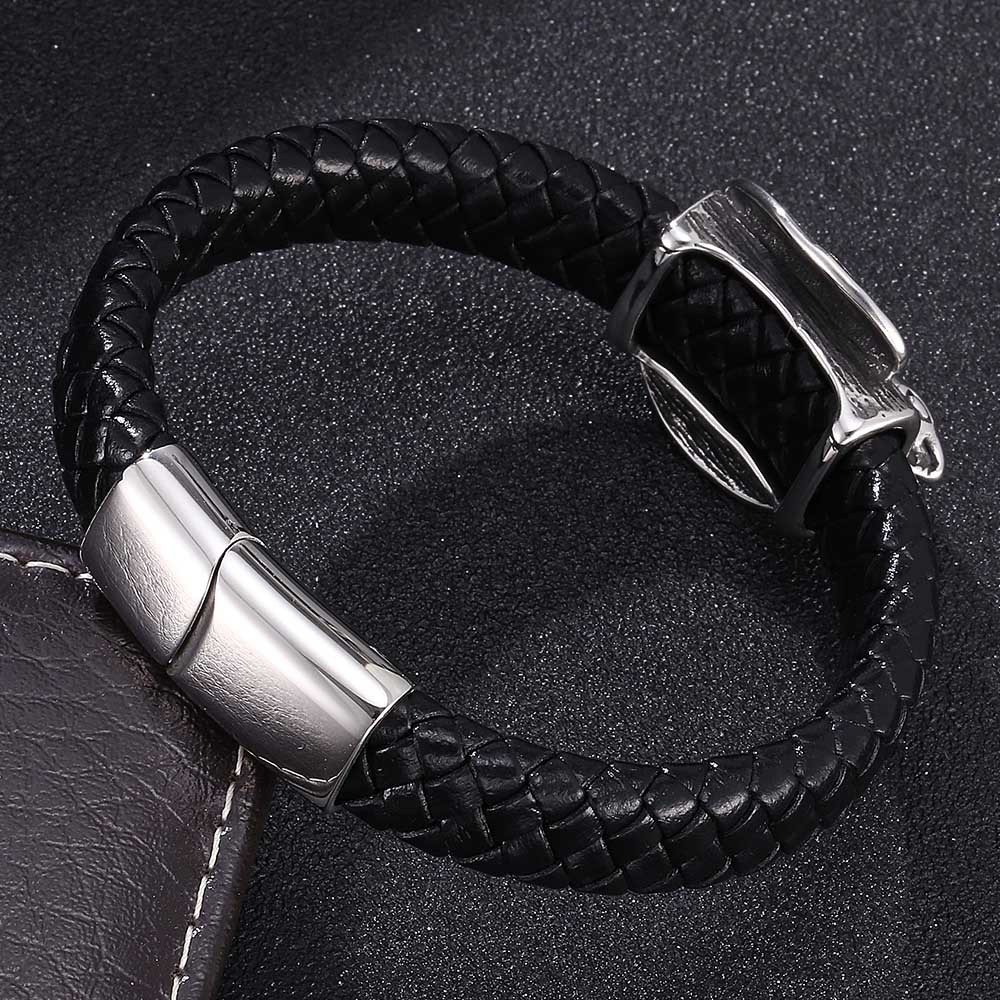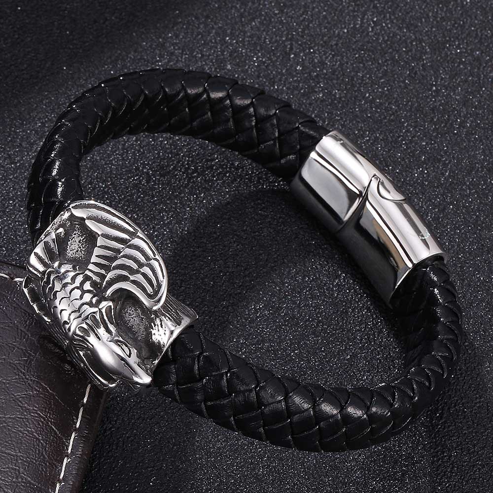 Stainless Steel Bold Leather Punk-Style Eagle Personalized Braided Leather Bracelet For Men