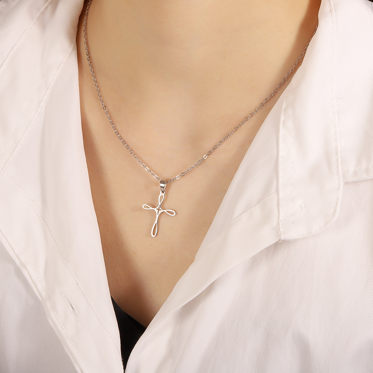 Stainless Steel Cross Necklace Choker & Earrings Set, Delicate Minimalist Stylish All-match Daily Jewelry