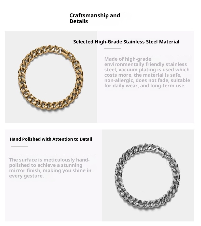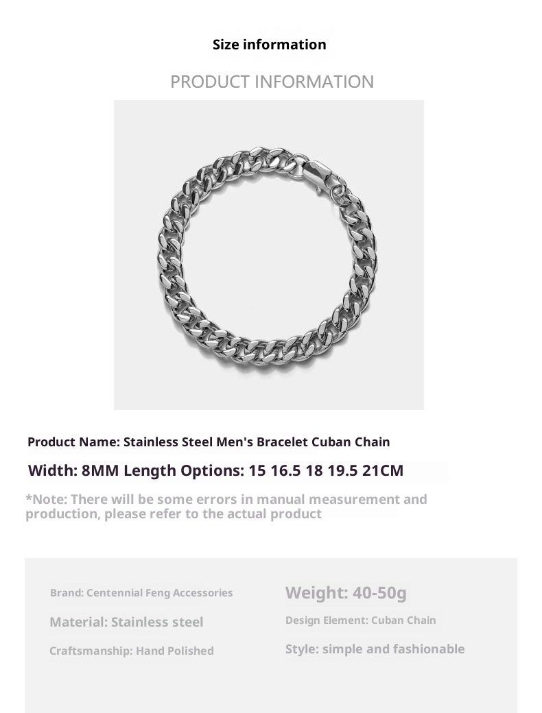 Color: Silver 15CM (width 8MM), silver 16.5CM (width 8MM), silver 18CM (width 8MM), Silver 19.5CM (width 8MM), silver 21CM (width 8MM), gold 15CM (width 8MM), gold 16.5CM (width 8MM), gold 18CM (width 8MM), gold 19.5CM (width 8MM), Golden 21CM (width 8MM)