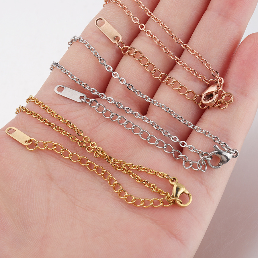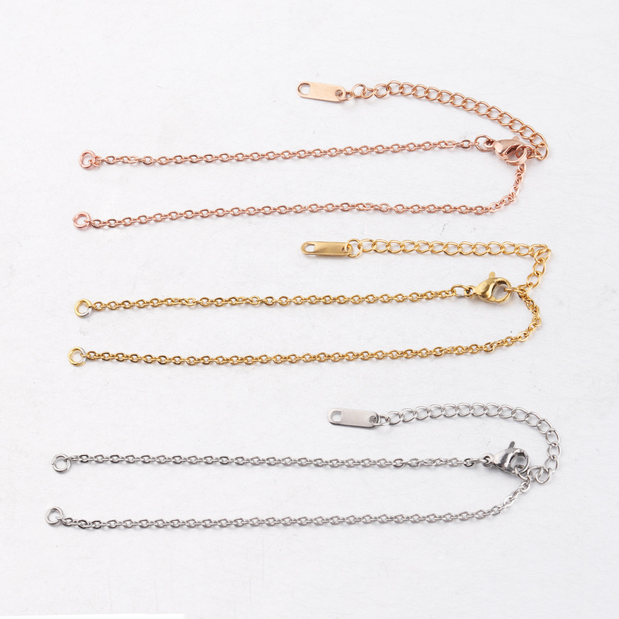 Material: Stainless steelChain size: 2mmSize: 20cm+6cm 18+6cmType: Extension chain