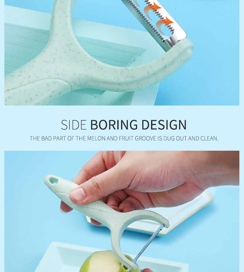 Material: stainless steelCategory: peelerPurpose: domestic fruit peelerFeatures: environmental friendly