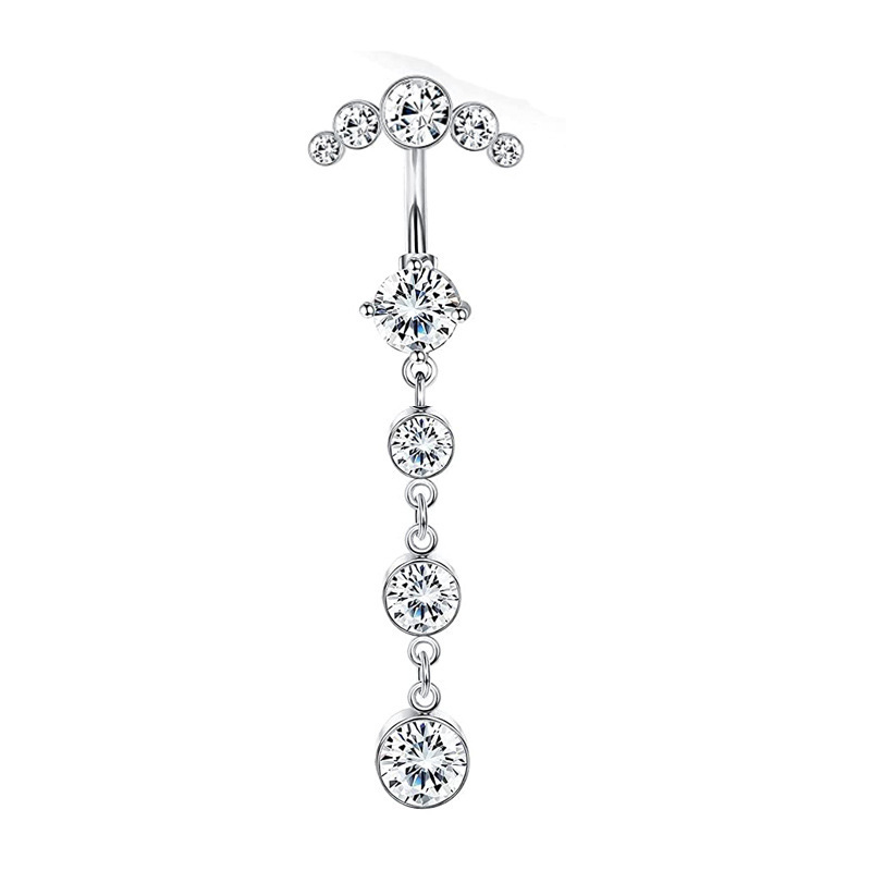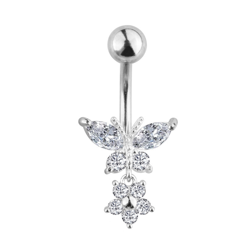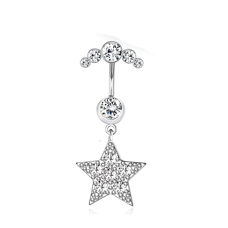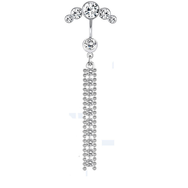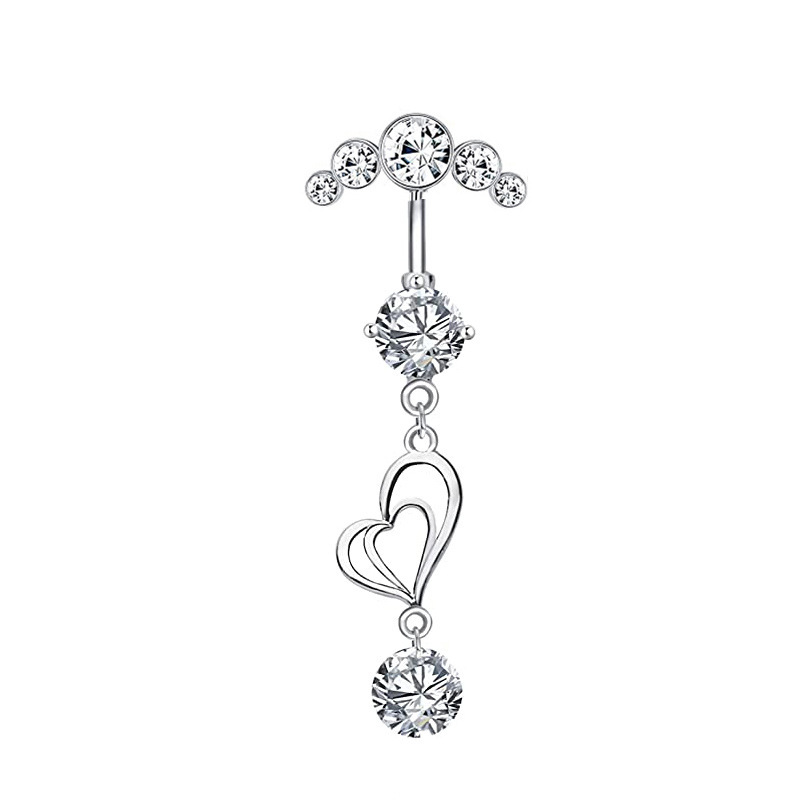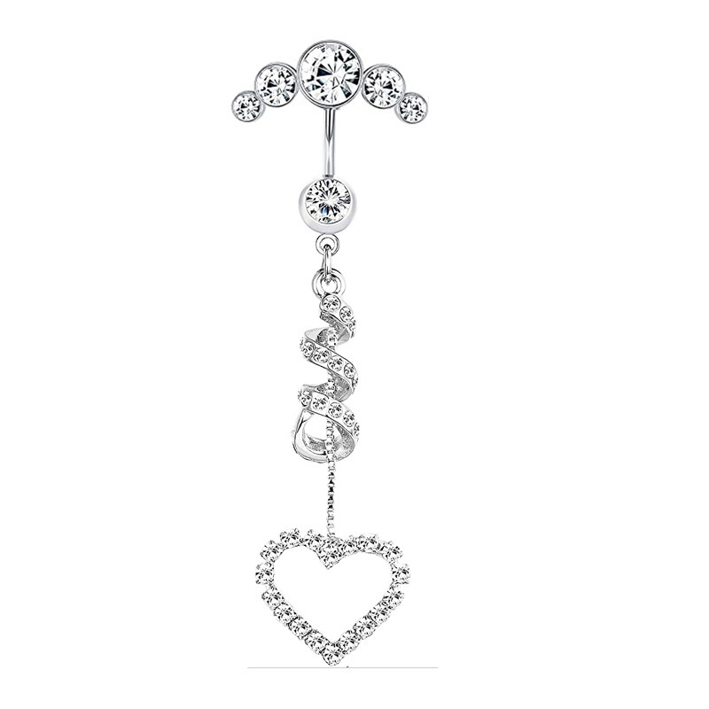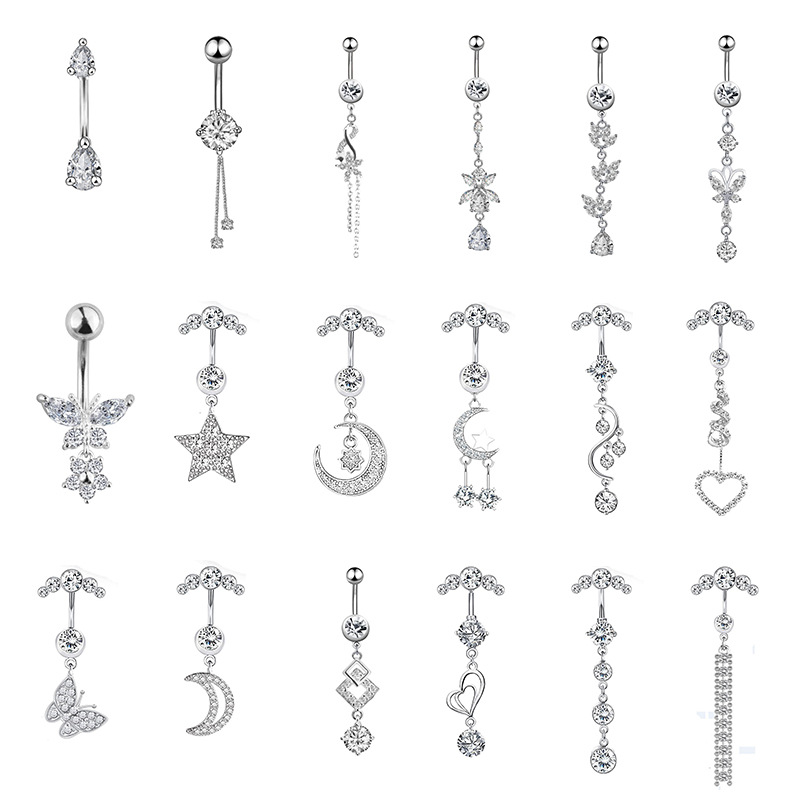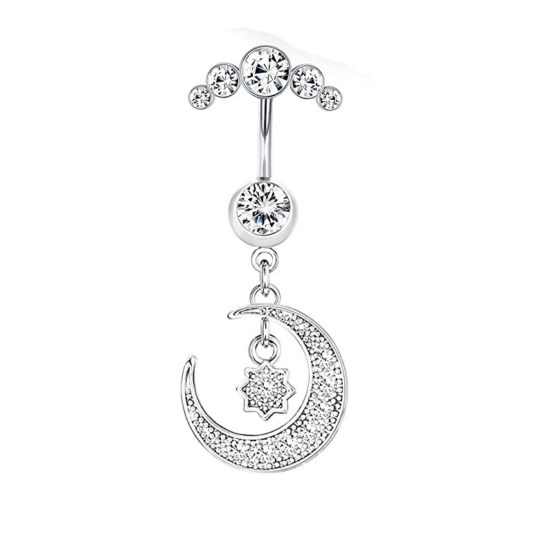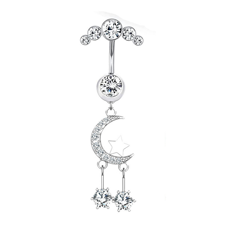 Stainless Steel European And American Inlaid Zircon Navel Stud Love Moon Piercing Jewelry