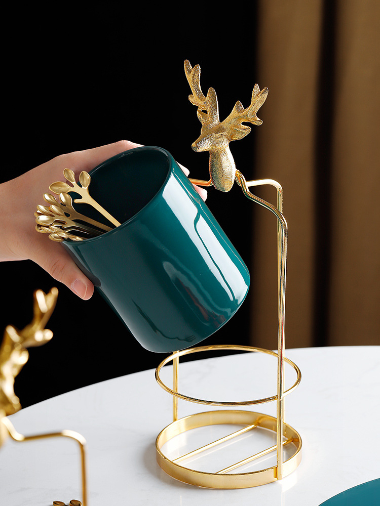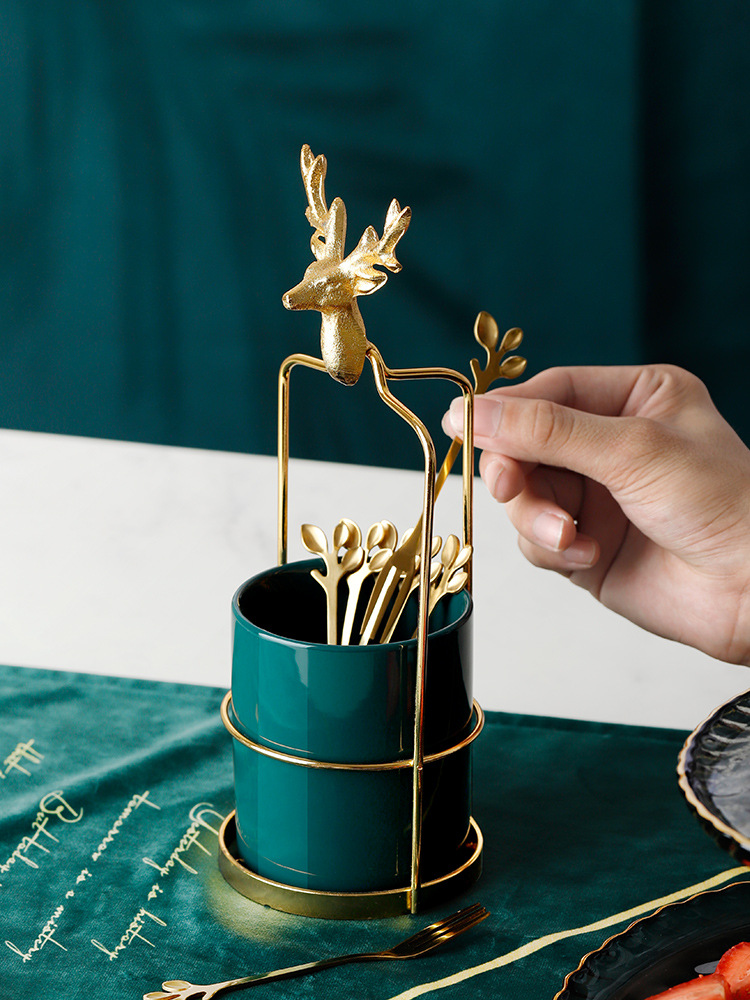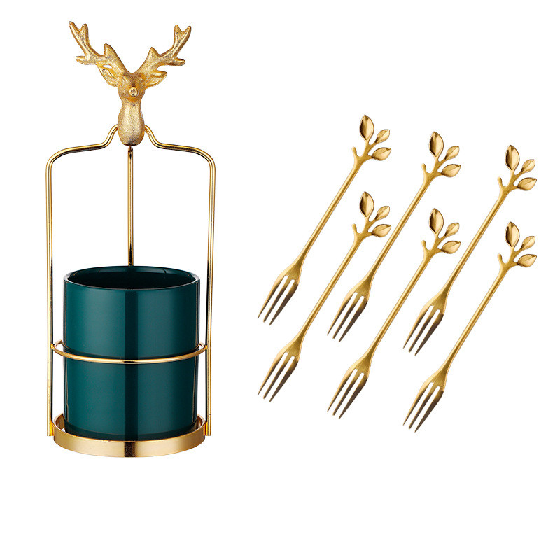 3style: Nordic deer gold frame + emerald light luxury jar + fruit fork × 6,