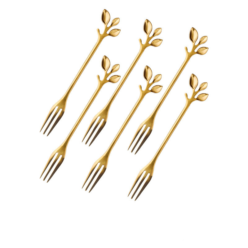 5style: 6 golden leaf fruit forks,