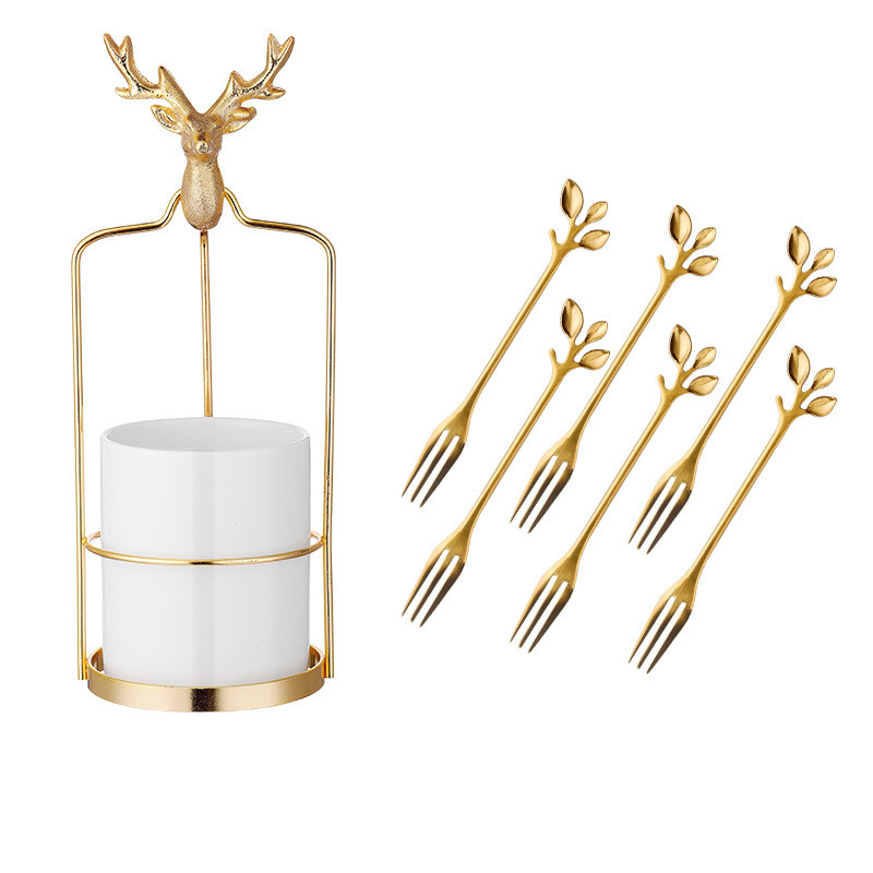 4style: Nordic deer gold frame+white light luxury jar+fruit fork×6,