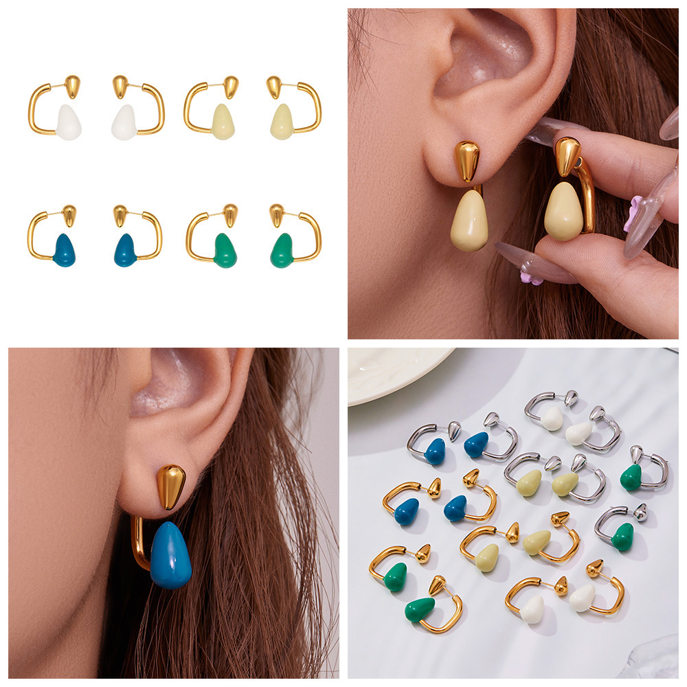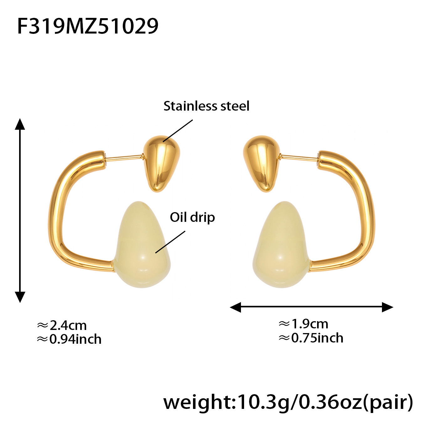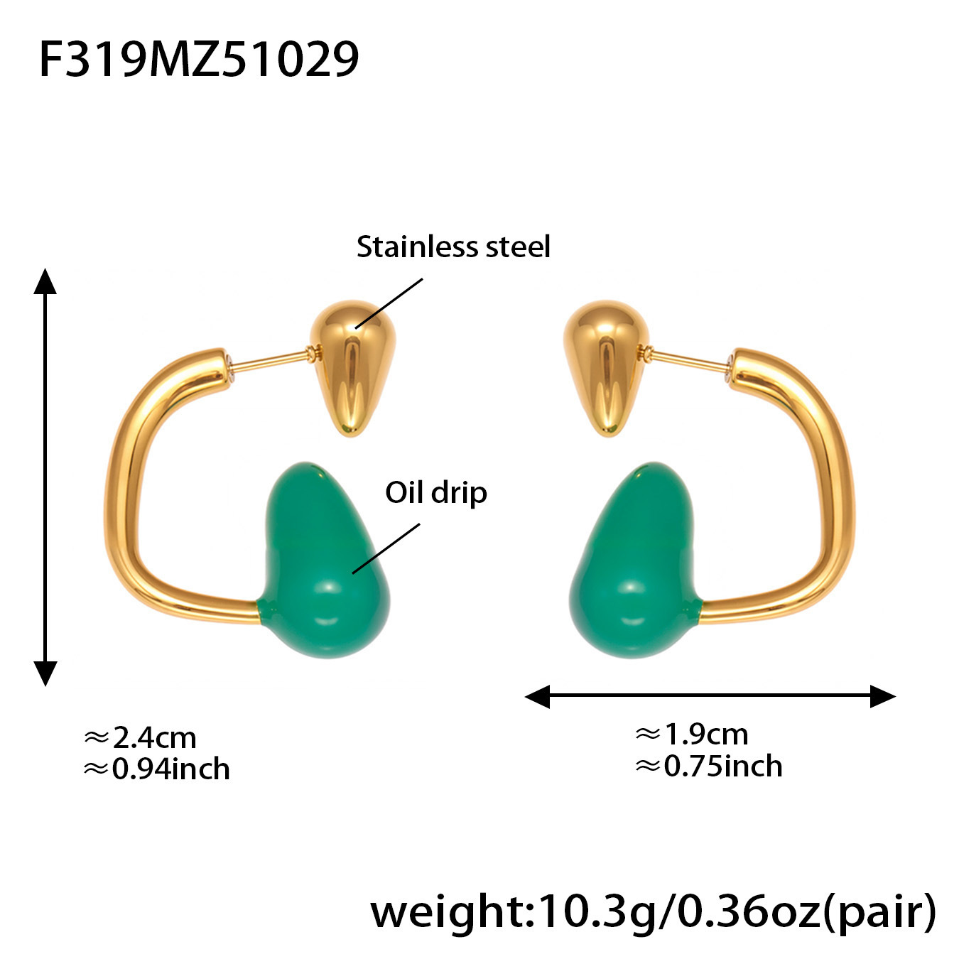 Colors: F319-Gold with White Oil-Drop Earrings, F319-Gold with Green Oil-Drop Earrings, F319-Gold with Blue Oil-Drop Earrings, F319-Gold with Matcha Green Earrings, F319-Stainless Steel Color with White Oil-Drop Earrings, F319-Stainless Steel Color with Green Oil-Drop Earrings, F319-Stainless Steel Color with Blue Oil-Drop Earrings, F319-Stainless Steel Color with Matcha Green Earrings