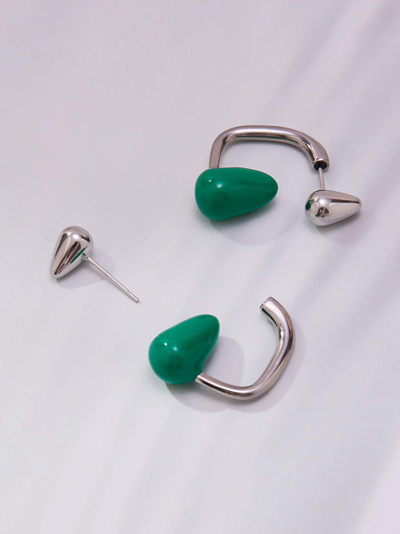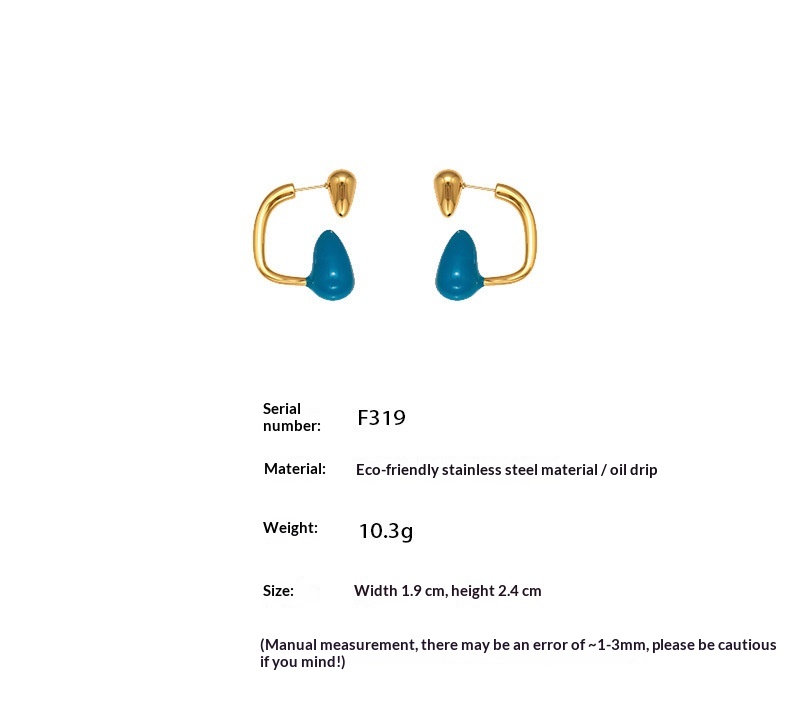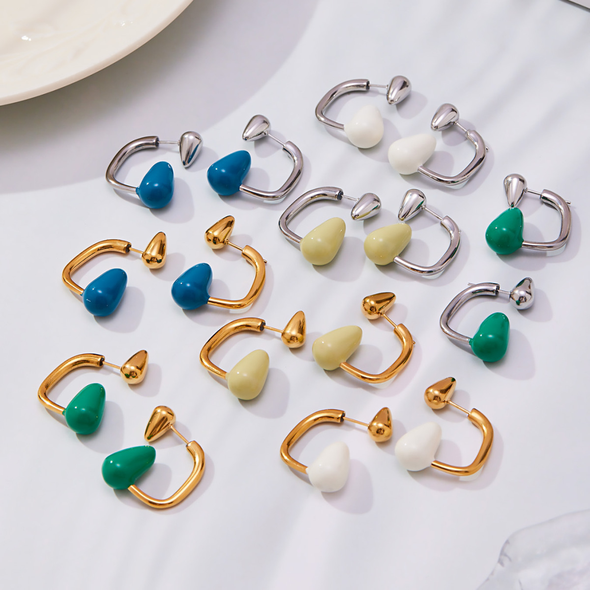 Colors: F319-Gold with White Oil-Drop Earrings, F319-Gold with Green Oil-Drop Earrings, F319-Gold with Blue Oil-Drop Earrings, F319-Gold with Matcha Green Earrings, F319-Stainless Steel Color with White Oil-Drop Earrings, F319-Stainless Steel Color with Green Oil-Drop Earrings, F319-Stainless Steel Color with Blue Oil-Drop Earrings, F319-Stainless Steel Color with Matcha Green Earrings