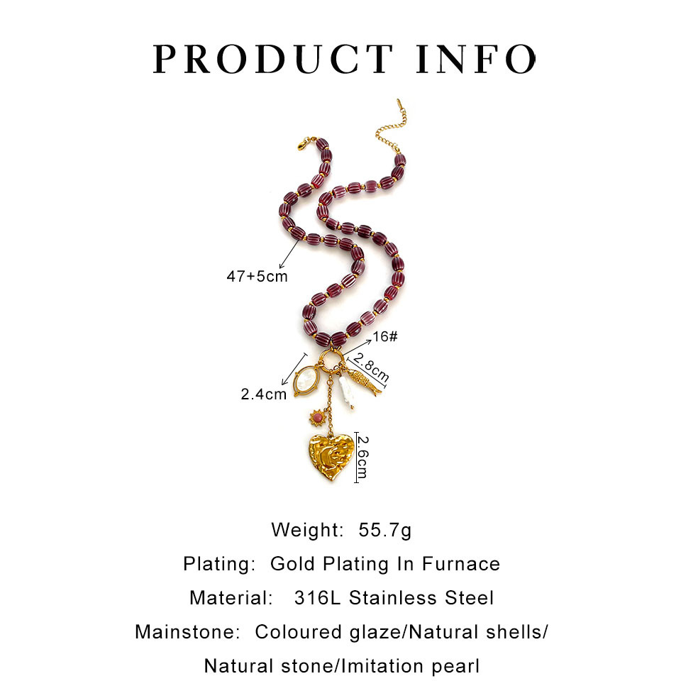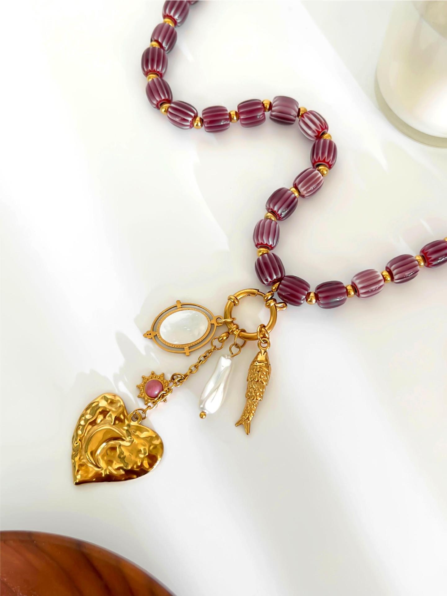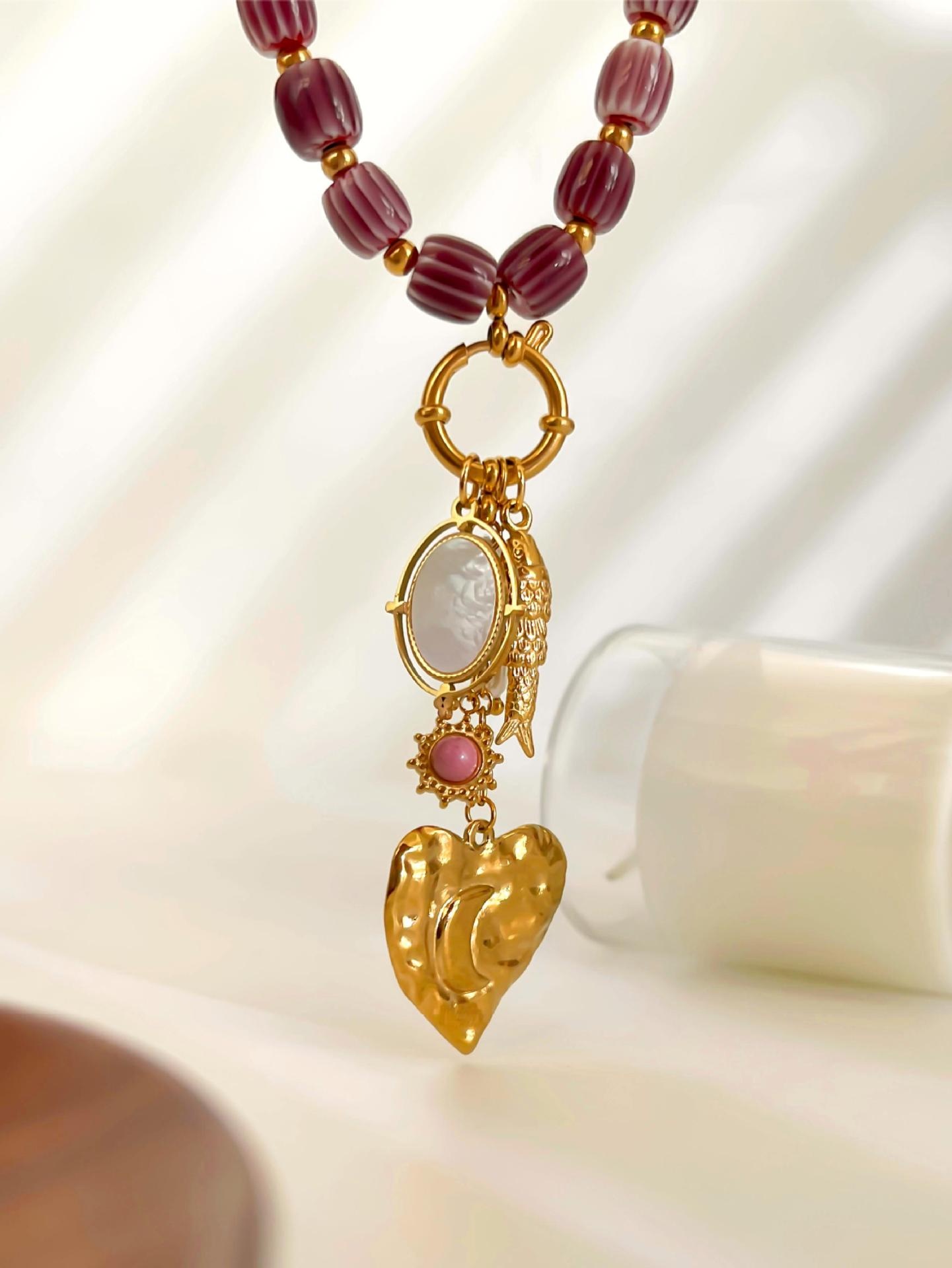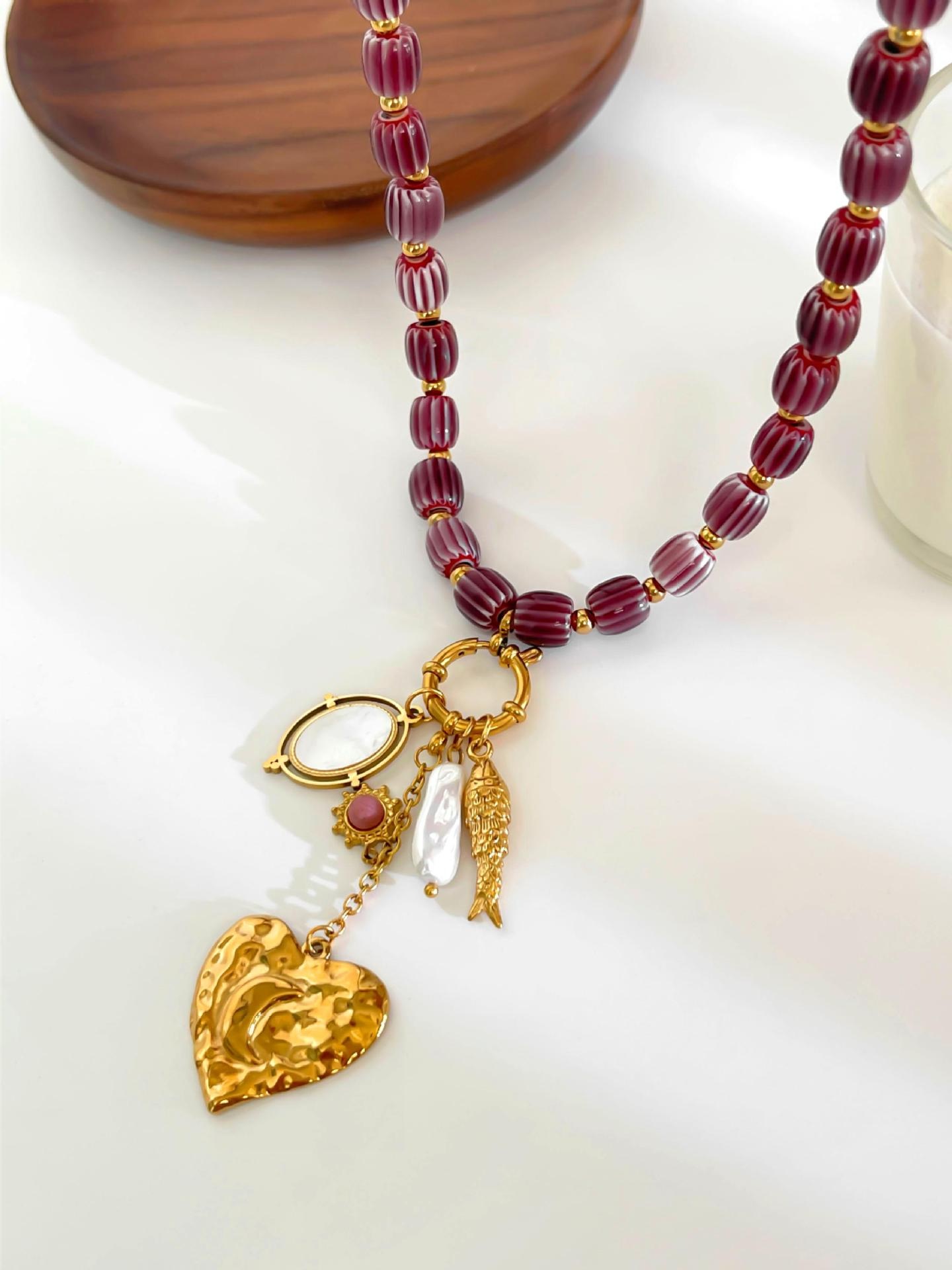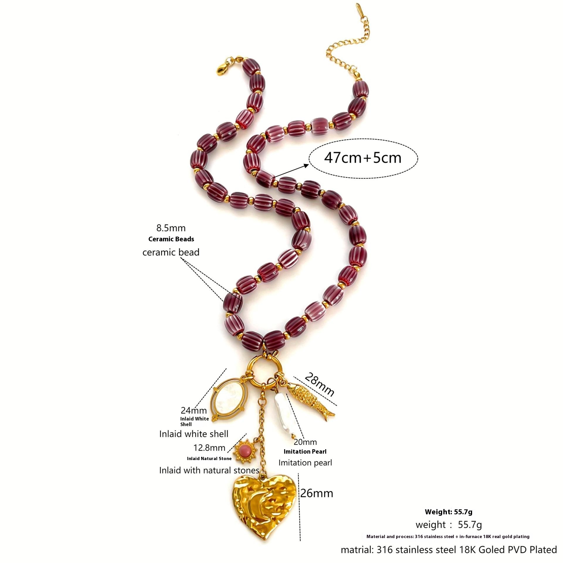 Stainless Steel Heart-shaped Small Fish White Bedo Pendant Autumn And Winter Brown Ceramic Women's Necklace