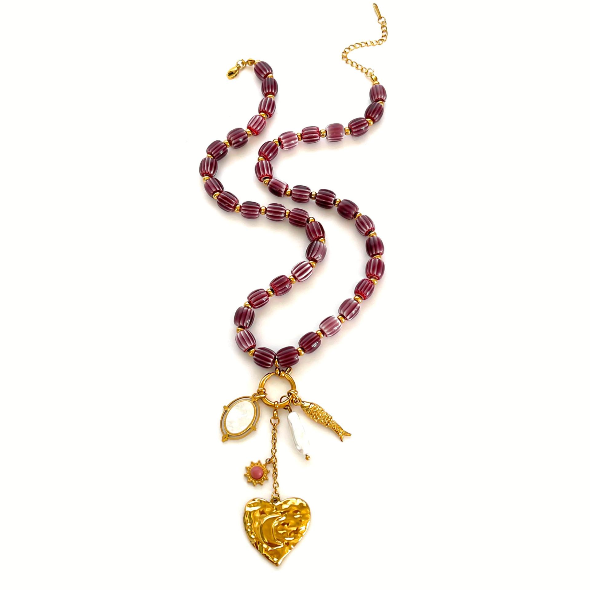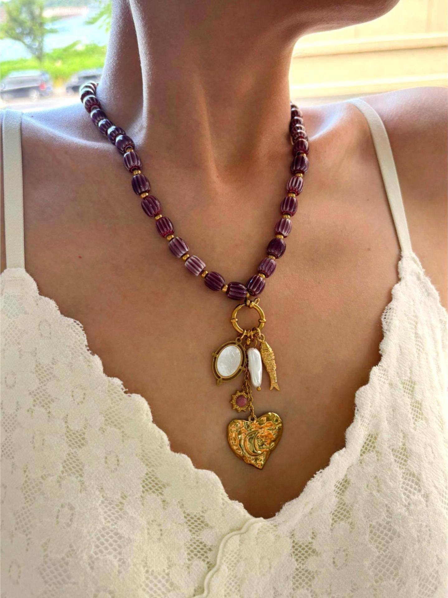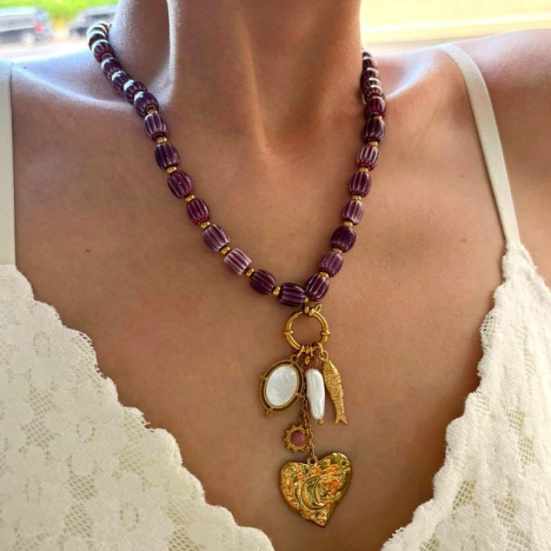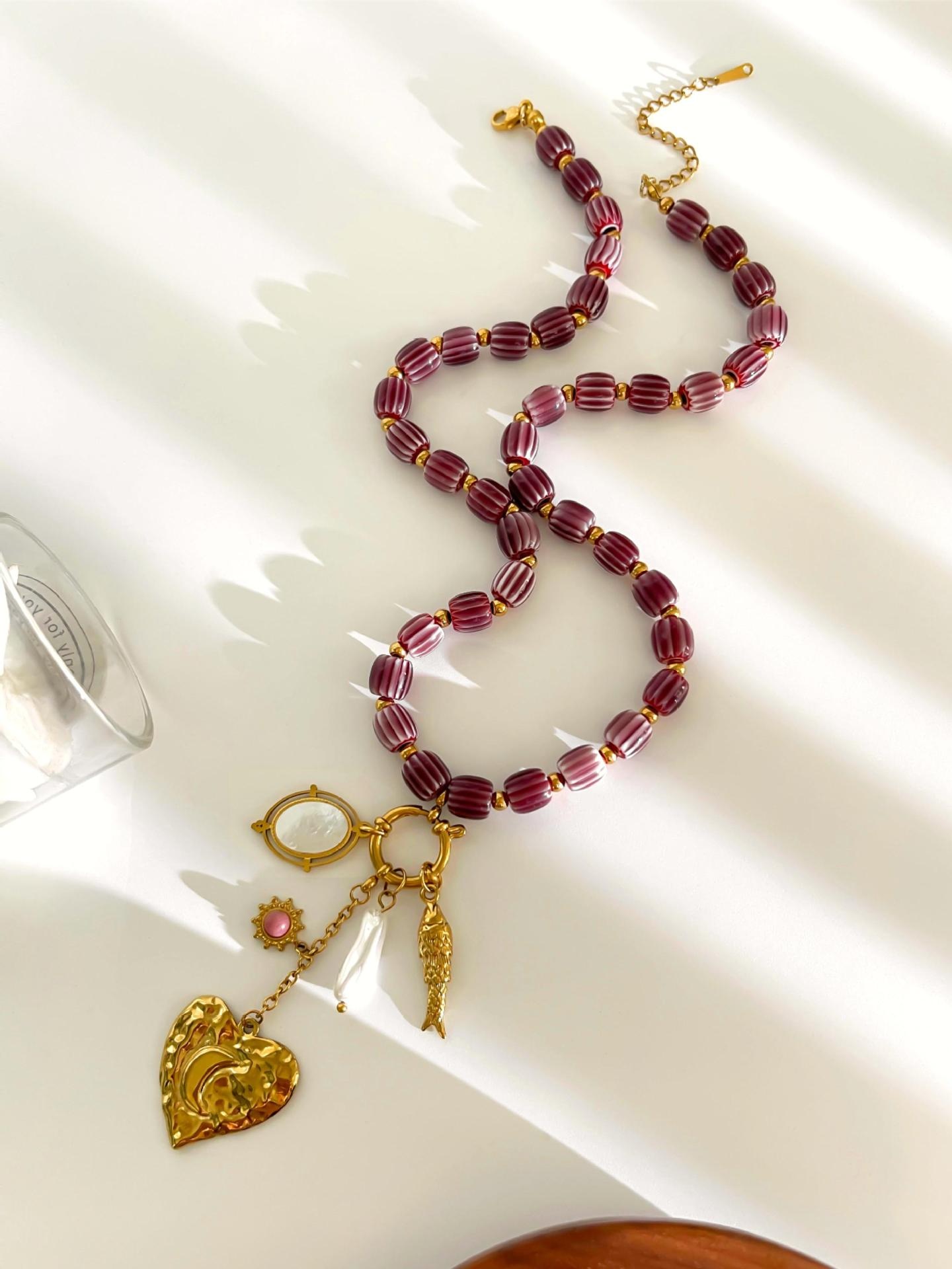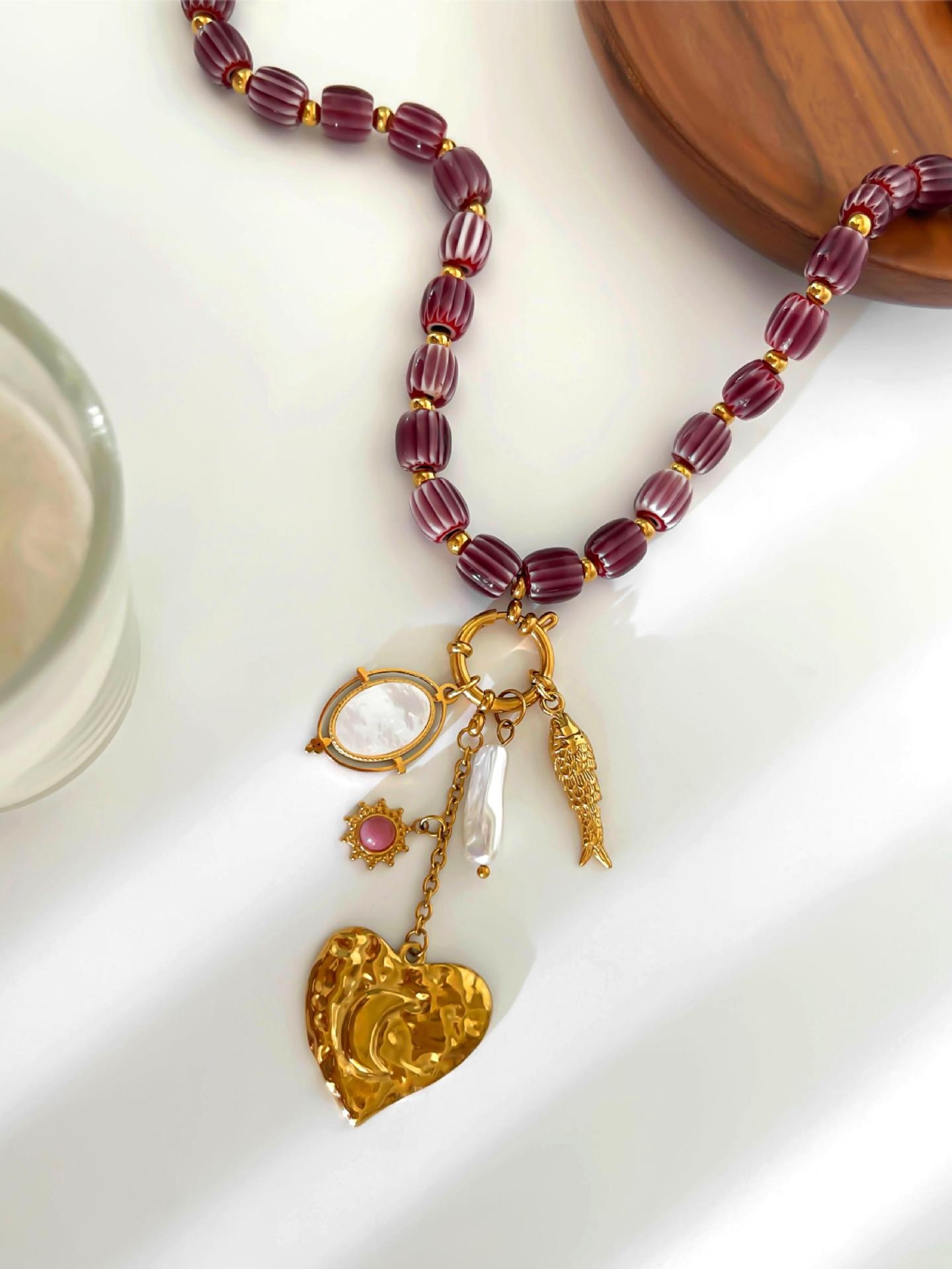 Stainless Steel Heart-shaped Small Fish White Bedo Pendant Autumn And Winter Brown Ceramic Women's Necklace