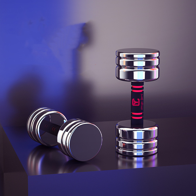Dumbbell stainless steel home fitness equipment pure steel detachable electroplating dumbbell super sub-high value dumbbell barbell combination
