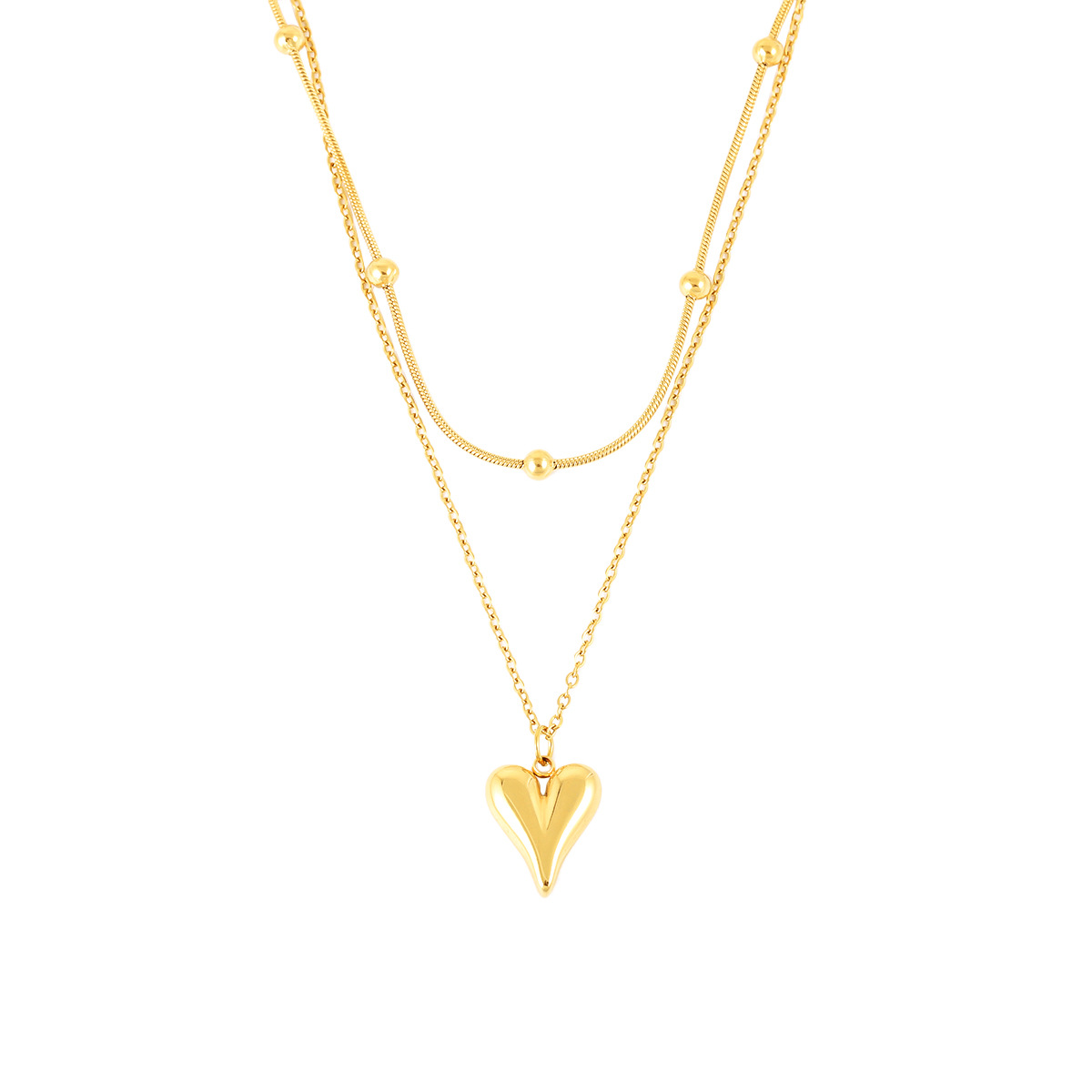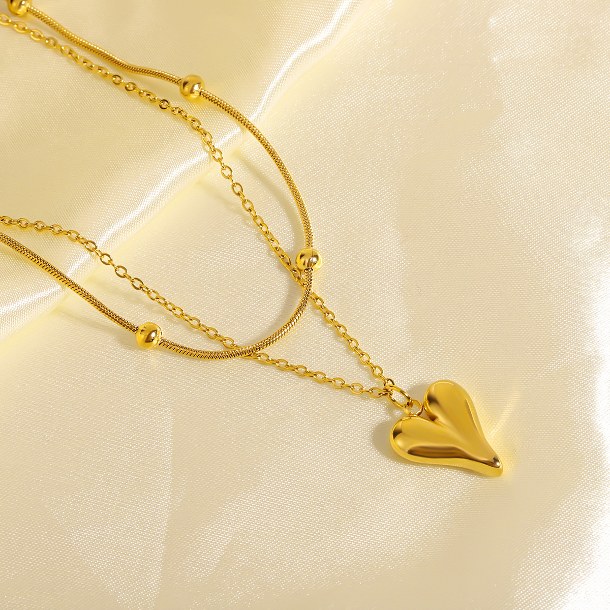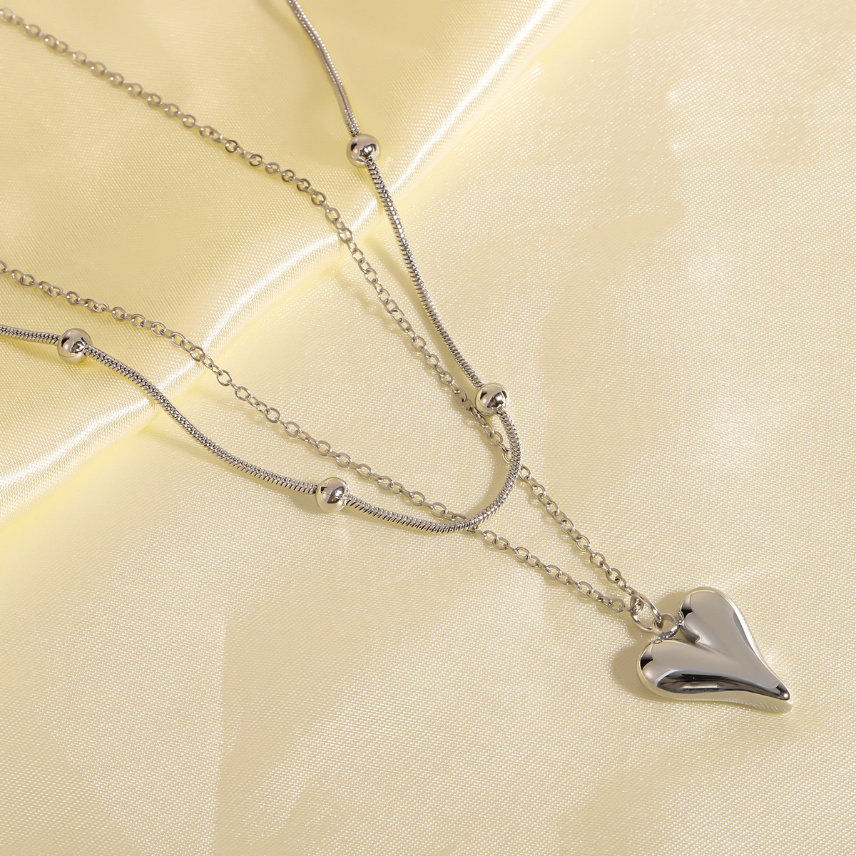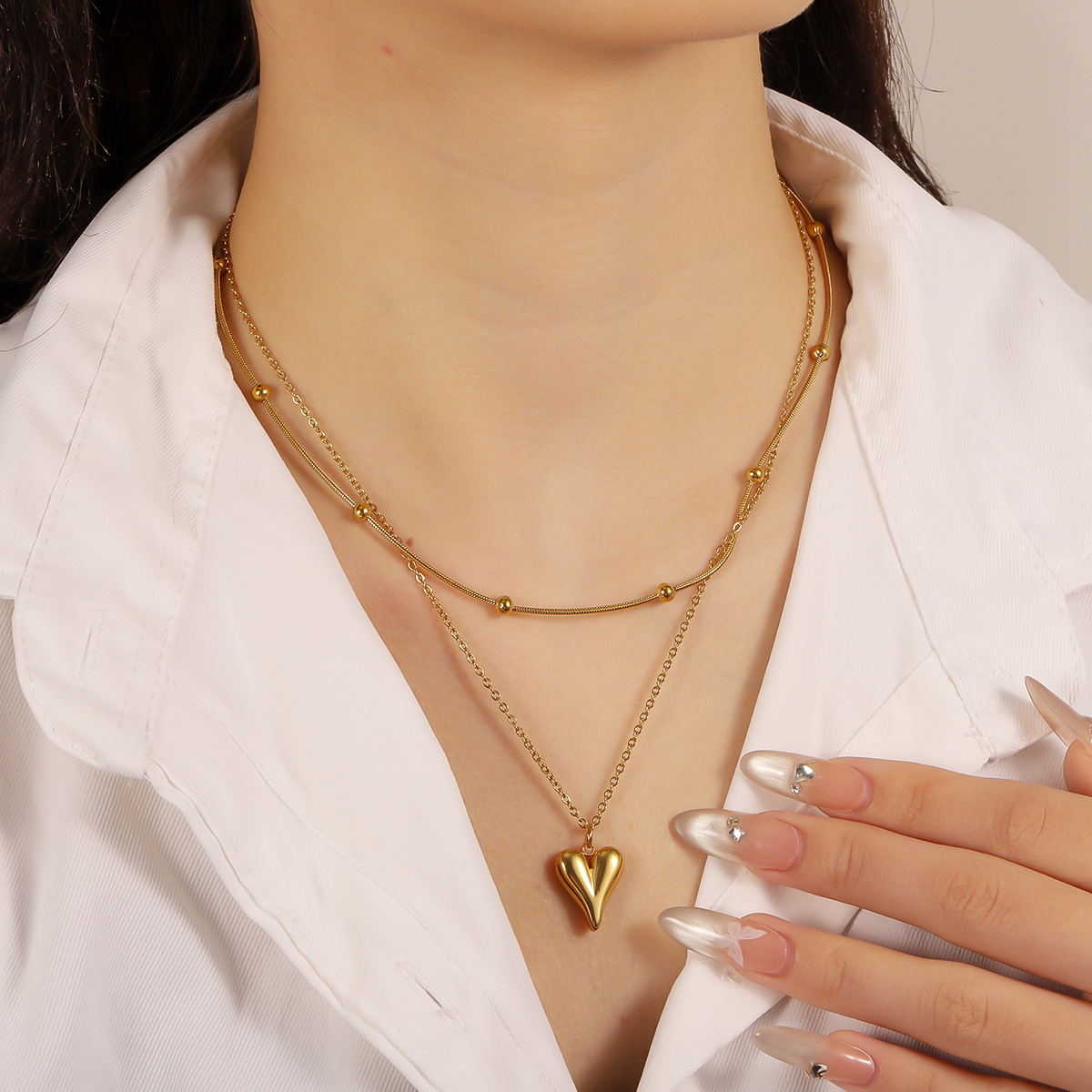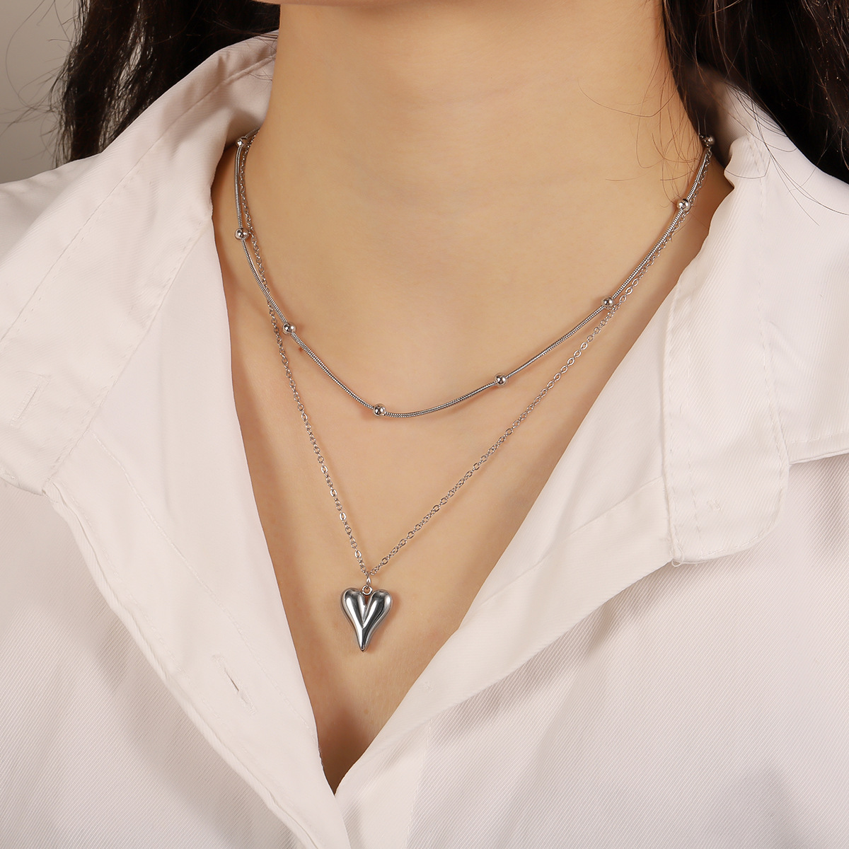 Stainless Steel Hot Sale Heart Pendant Double Layer Necklace, Niche Design, Stylish Minimalist Jewelry