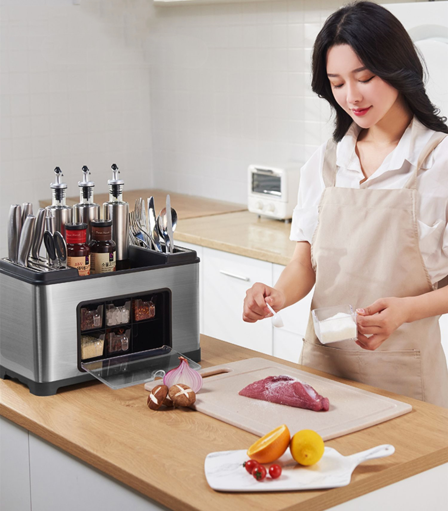 A3: 201 silver stainless steel black frame+6 spice bottles,