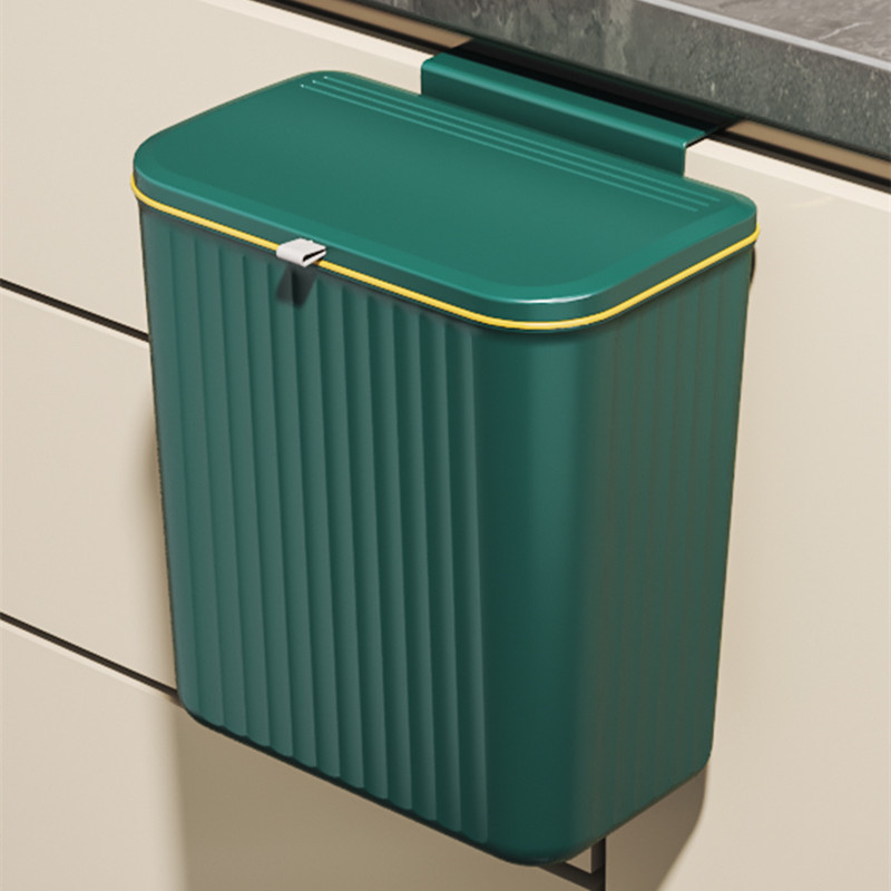 Green wall mounted trash can 12L [free hook/no trace sticker]