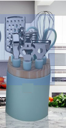 Whisk, wire grater, scale planer, bottle opener, tray lifter, peeler, fruit knife, kitchen scissors*1