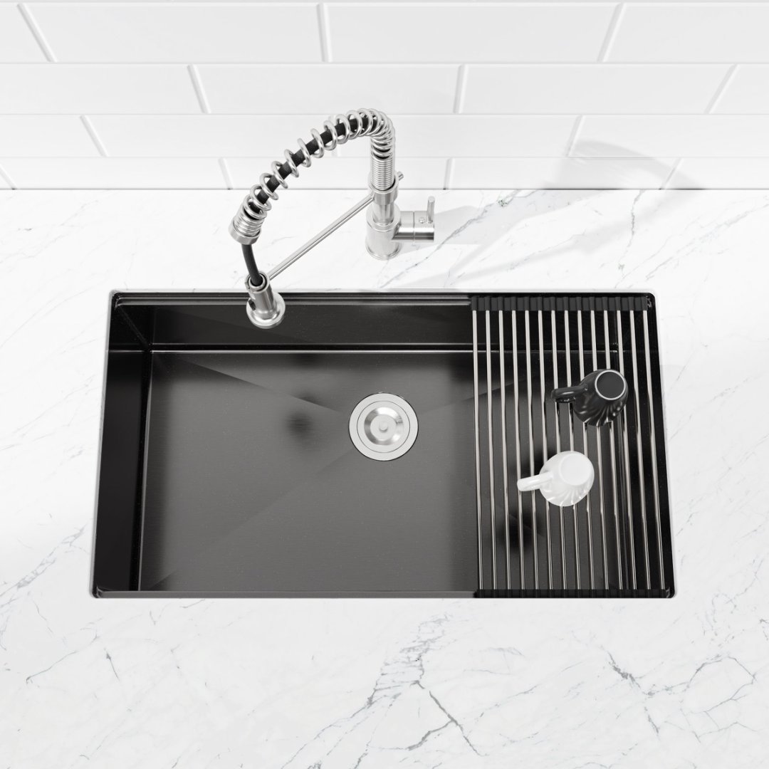 Sustainable Brushed Steel: This scratch-resistant and easy-to-clean finish ensures your sink remains pristine and durable well into the future.