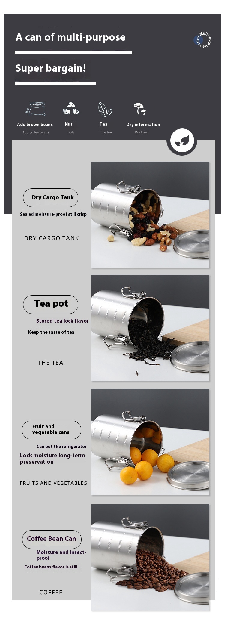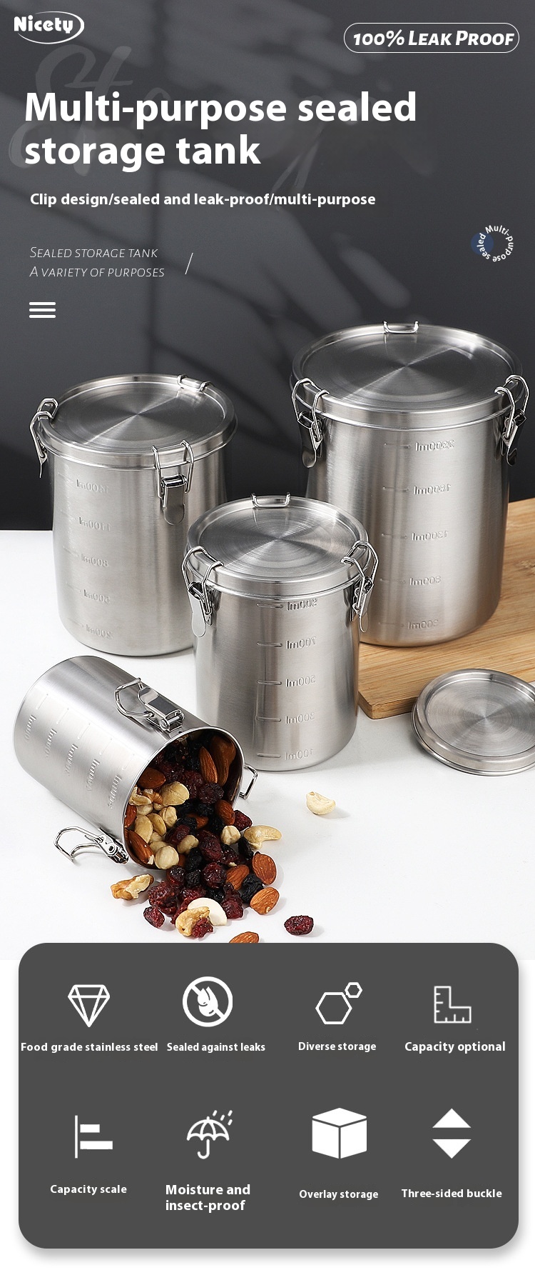 Stainless Steel Kitchen Storage Sealed Cans