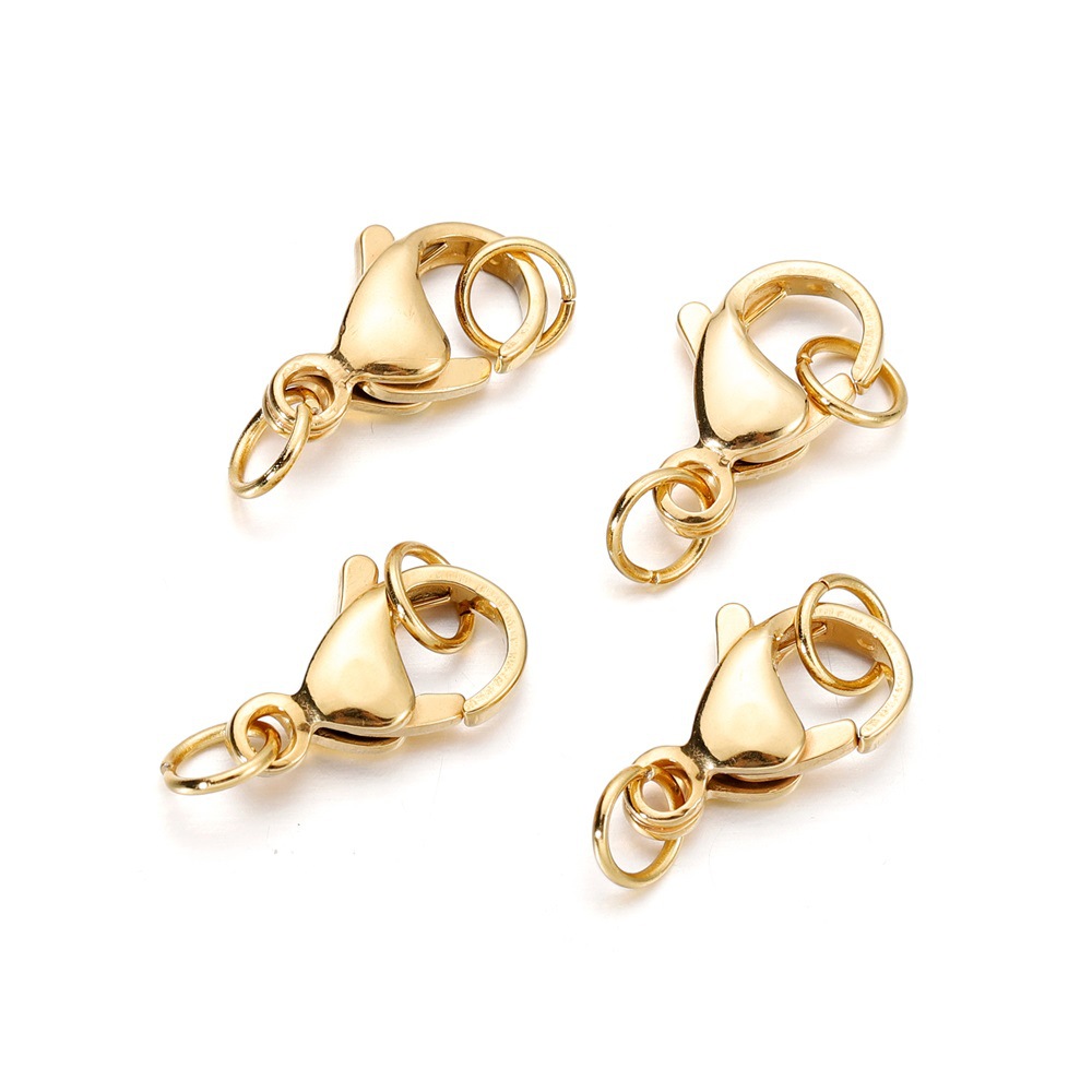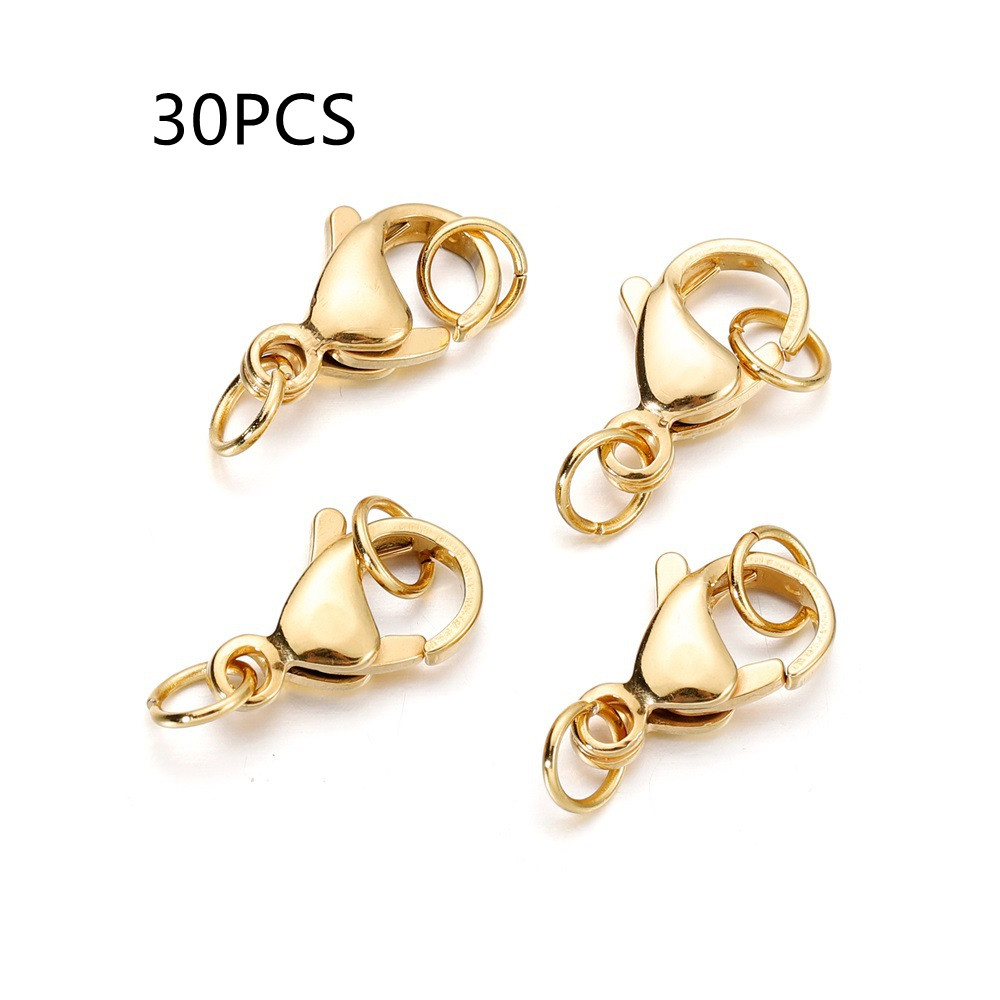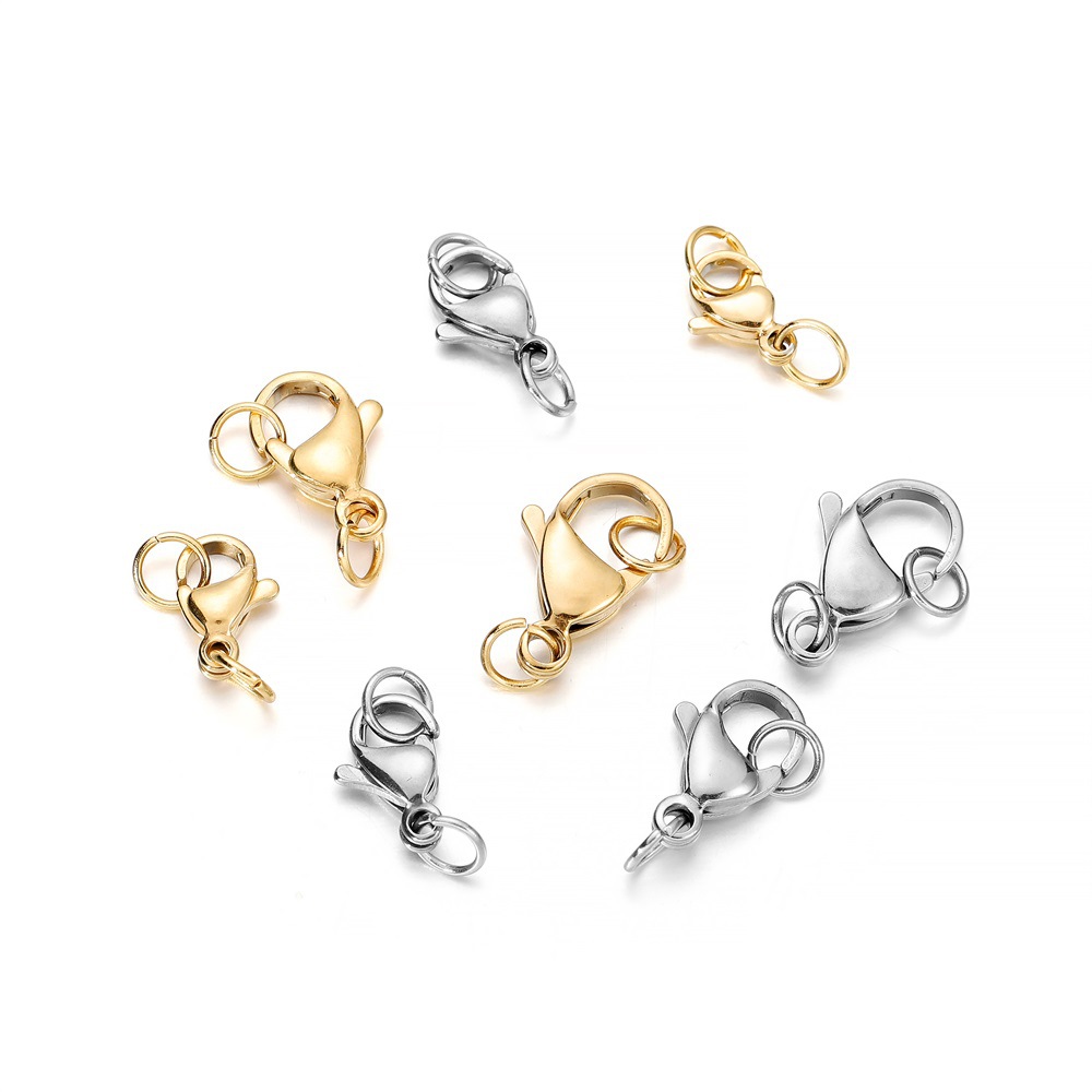 Color: 30 gold stainless steel lobster clasps with a size of 5 * 9mm+60 0.7 * 5 single loops, 30 gold stainless steel lobster clasps with a size of 5 * 10mm+60 0.7 * 5 single loops, 30 gold stainless steel lobster clasps with a size of 6 * 11mm+60 0.7 * 5 single loops, 30 gold stainless steel lobster clasps with a size of 6 * 12mm+60 0.7 * 5 single loops, 30 gold stainless steel lobster clasps with a size of 7 * 13mm+60 0.7 * 5 single loops, 30 gold stainless steel lobster clasps with a size of 8 * 15mm+60 0.7 * 5 single loops, and 30 steel lobster clasps with a size of 5 * 9mm+60 0.7 * 5 single loops, 30 steel colored stainless steel lobster clasps with a size of 5 * 10mm and 60 0.7 * 5 single loops, 30 steel colored stainless steel lobster clasps with a size of 6 * 11mm and 60 0.7 * 5 single loops, 30 steel colored stainless steel lobster clasps with a size of 6 * 12mm and 60 0.7 * 5 single loops, 30 steel colored stainless steel lobster clasps with a size of 7 * 13mm and 60 0.7 * 5 single loops, and 30 steel colored stainless steel lobster clasps with a size of 8 * 15mm and 60 0.7 * 5 single loops