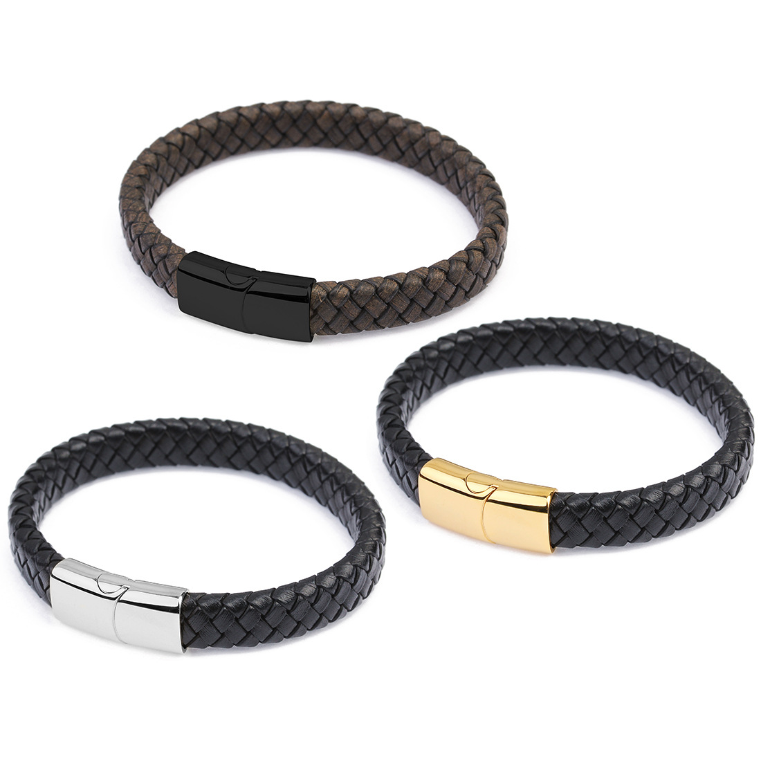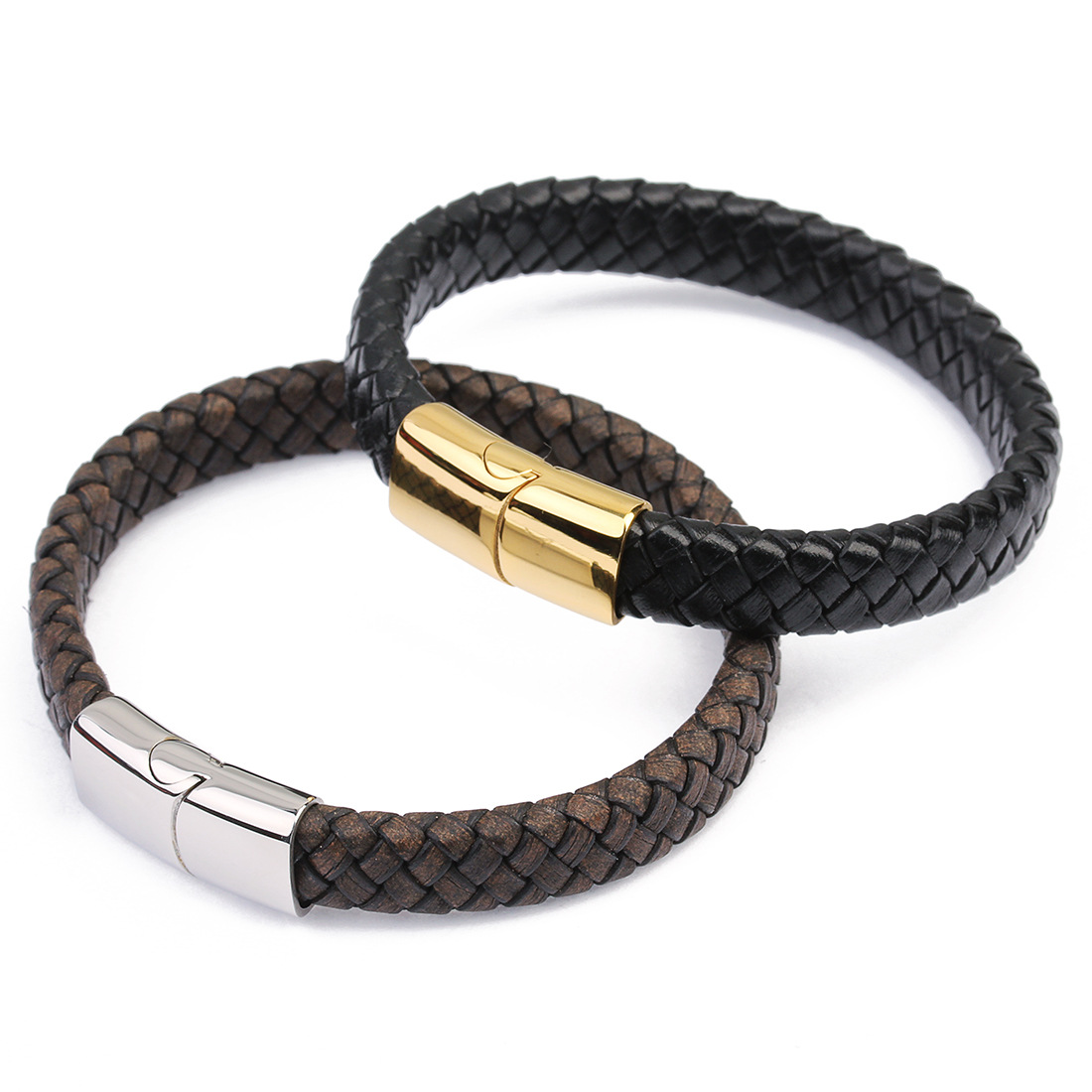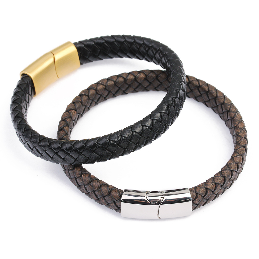 Material: leather rope + stainless steel magnetic buckle