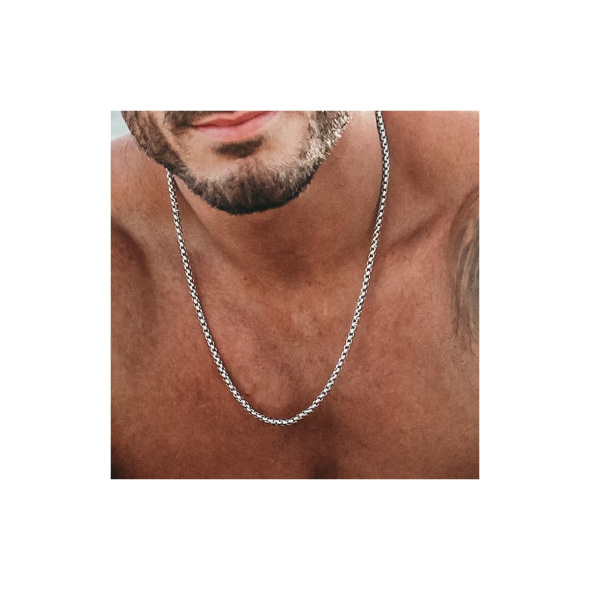 This stainless steel men woven chain necklace offers a strong and stylish look suitable for daily wear. The woven chain design provides a bold masculine appearance while the durable steel material ensures long lasting shine and resistance to tarnishing. Comfortable for everyday use it pairs well with casual modern and streetwear outfits. A perfect choice for men who prefer sturdy minimal and timeless chain accessories.