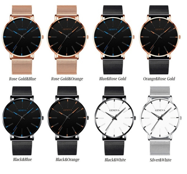A: Rose Gold Shell Black Face Rose Gold Needle Rose Gold Mesh