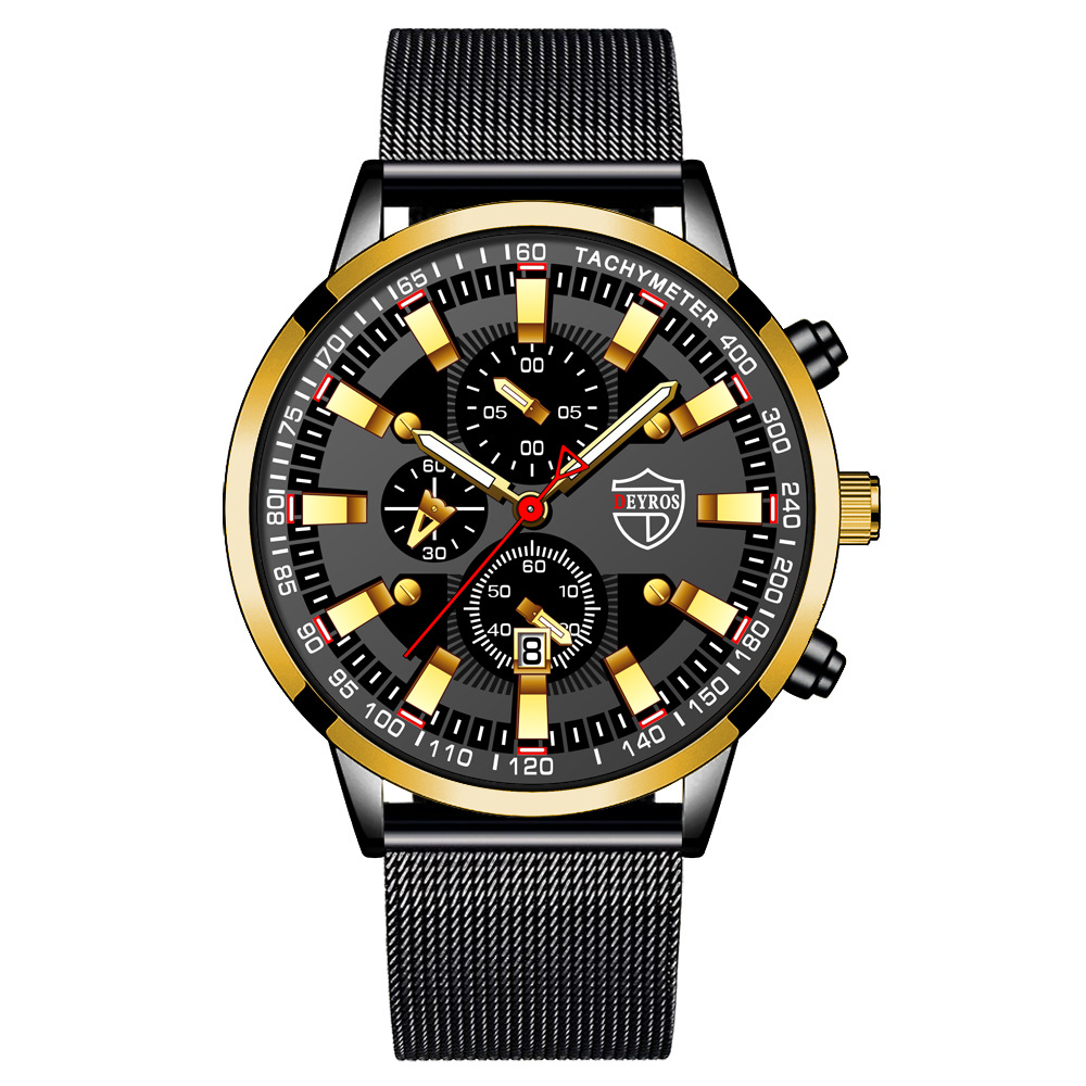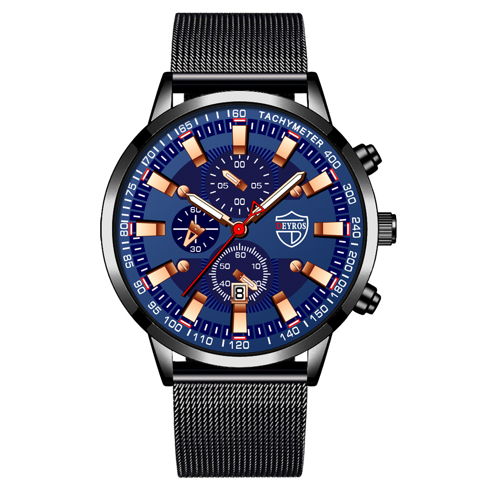 Color: black steel gold [mesh belt + calendar / luminous], Benxi Steel black [mesh belt + calendar / luminous], black steel silver [mesh belt + calendar / luminous], black steel blue [mesh belt + calendar / luminous], Silver Steel Black [Mesh Belt + Calendar/Night Light], Gold Steel Black [Mesh Belt + Calendar/Night Light], Black Steel Blue Rose [Mesh Belt + Calendar/Night Light]