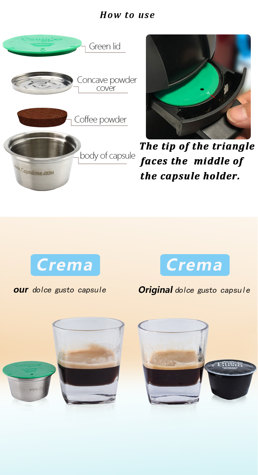 Type: Reusable capsules suitable for dolce gusto