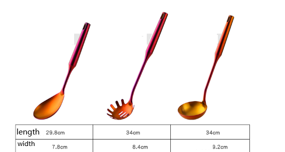 [Material]: 304 stainless steel sanding[Product]: Spatula, frying shovel, 1 tablespoon scallion, large colander, rice spoon, 1 rack