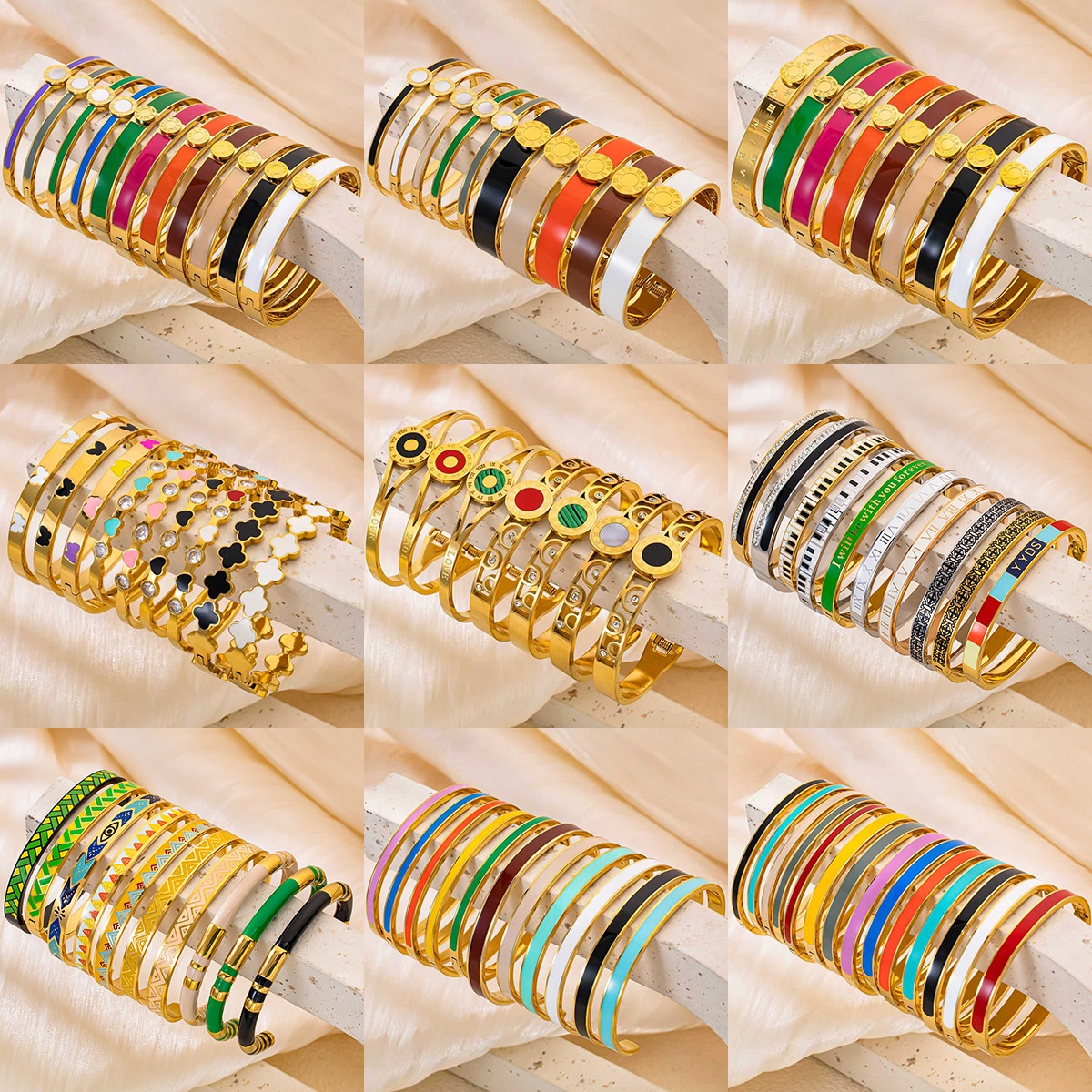 Stainless Steel Open-enamel Epoxy Snap Bracelet