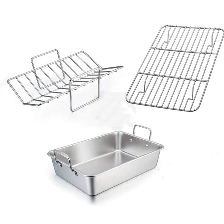 Product combination: Round handle baking tray/Flat handle baking tray/Black grill/Silver mesh rack