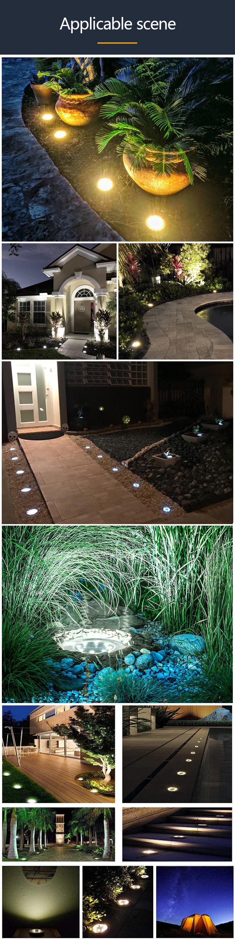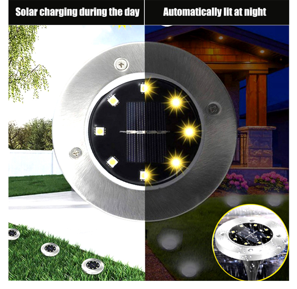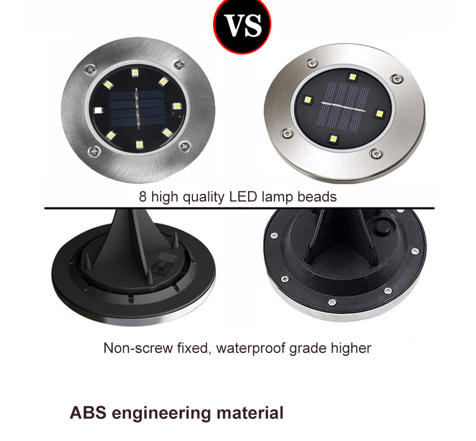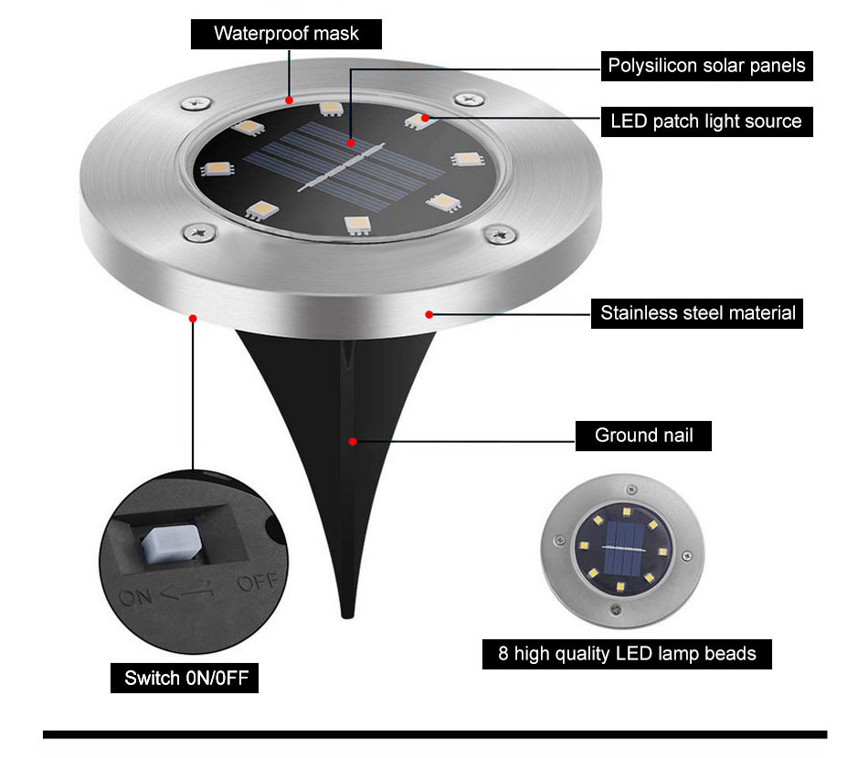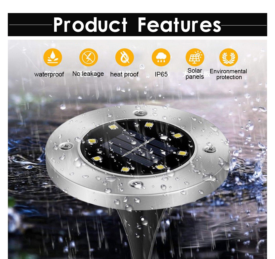 When the surrounding environment is dark, the solar ground lights will automatically turn on, gather energy even on overcast days, automatically charging on daytime, and automatically turn on at night.