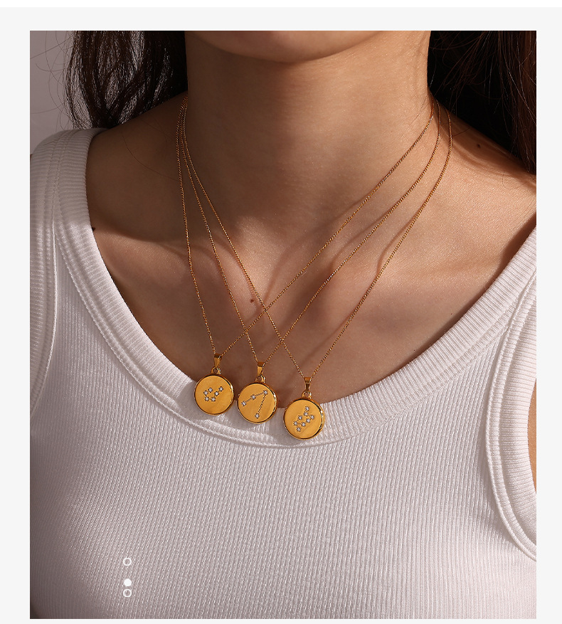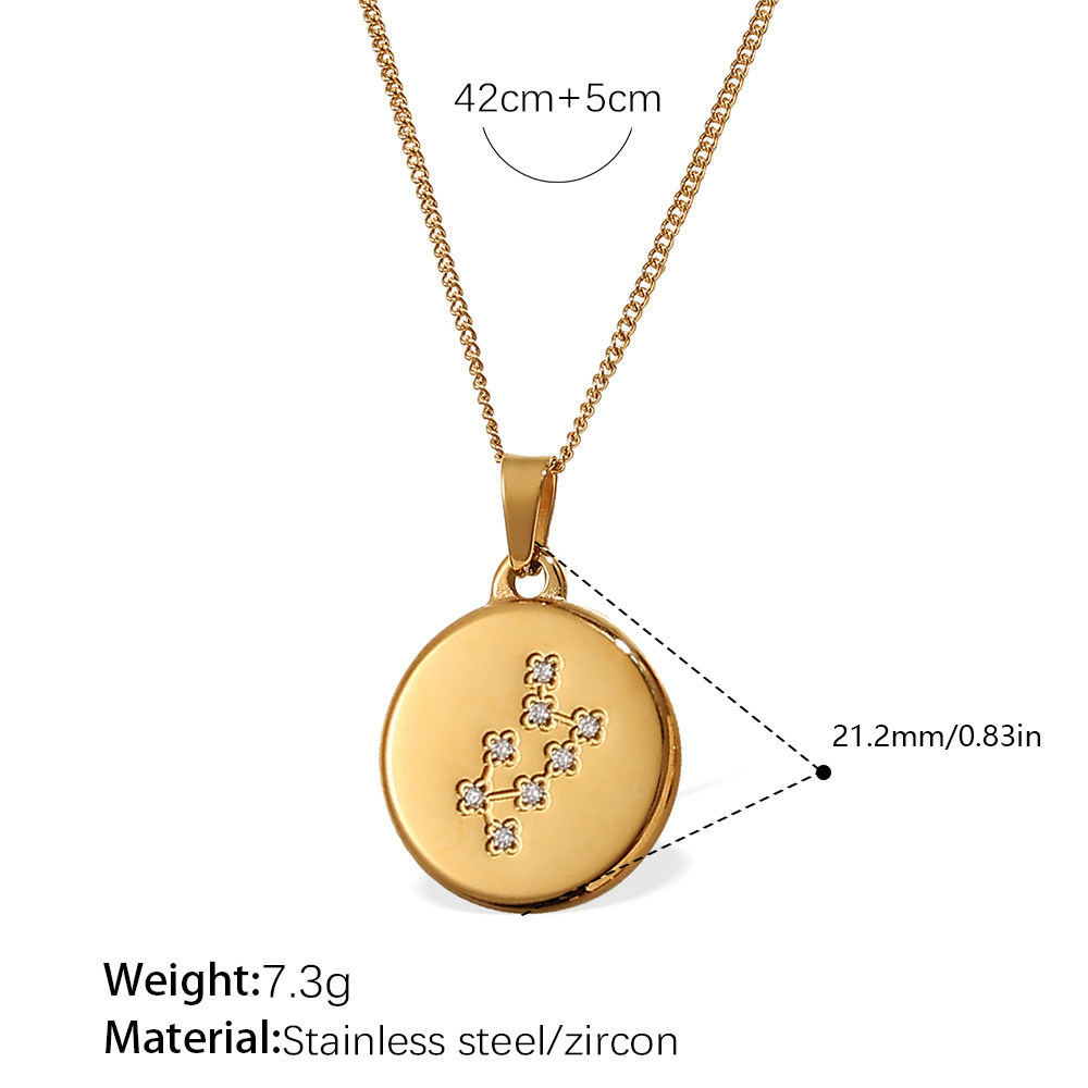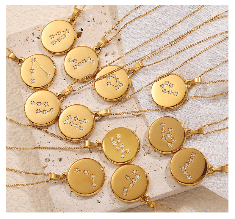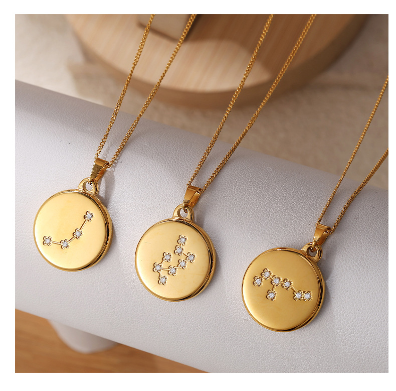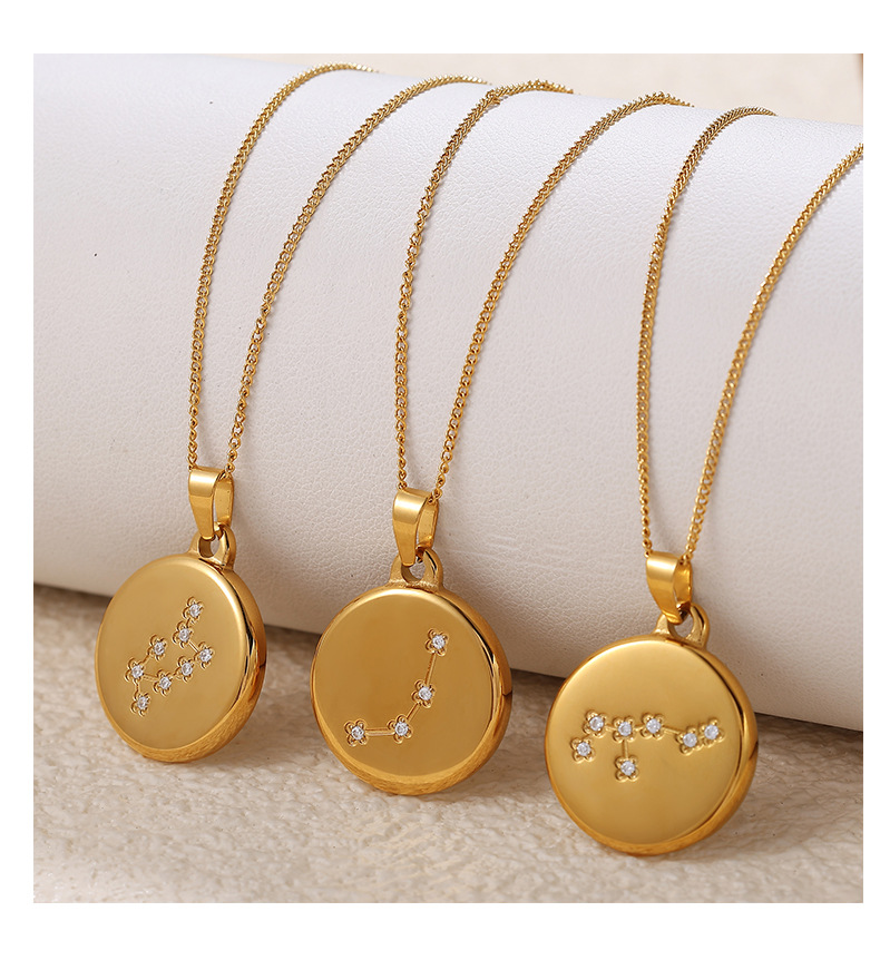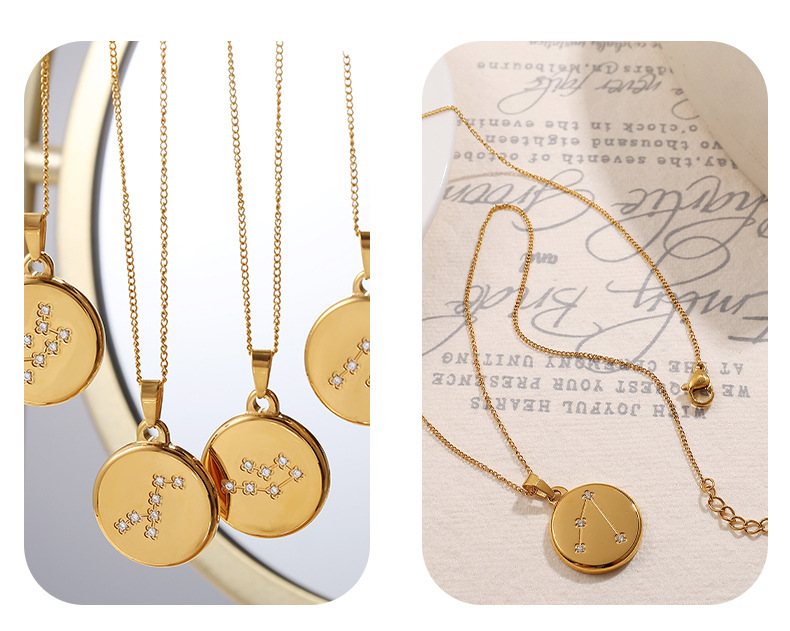 Colors: XL444WEG1 Aquarius gold necklace, XL444WEG2 Pisces gold necklace, XL444WEG3 Aries gold necklace, XL444WEG4 Taurus gold necklace, XL444WEG5 Gemini gold necklace, XL444WEG6 Cancer gold necklace, XL444WEG7 Leo gold necklace, XL444WEG8 Virgo gold necklace, XL444WEG9 Libra gold necklace, XL444WEG10 Scorpio gold necklace, XL444WEG11 Sagittarius gold necklace, XL444WEG12 Capricorn gold necklace