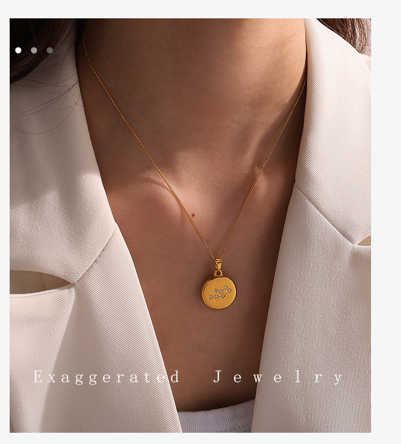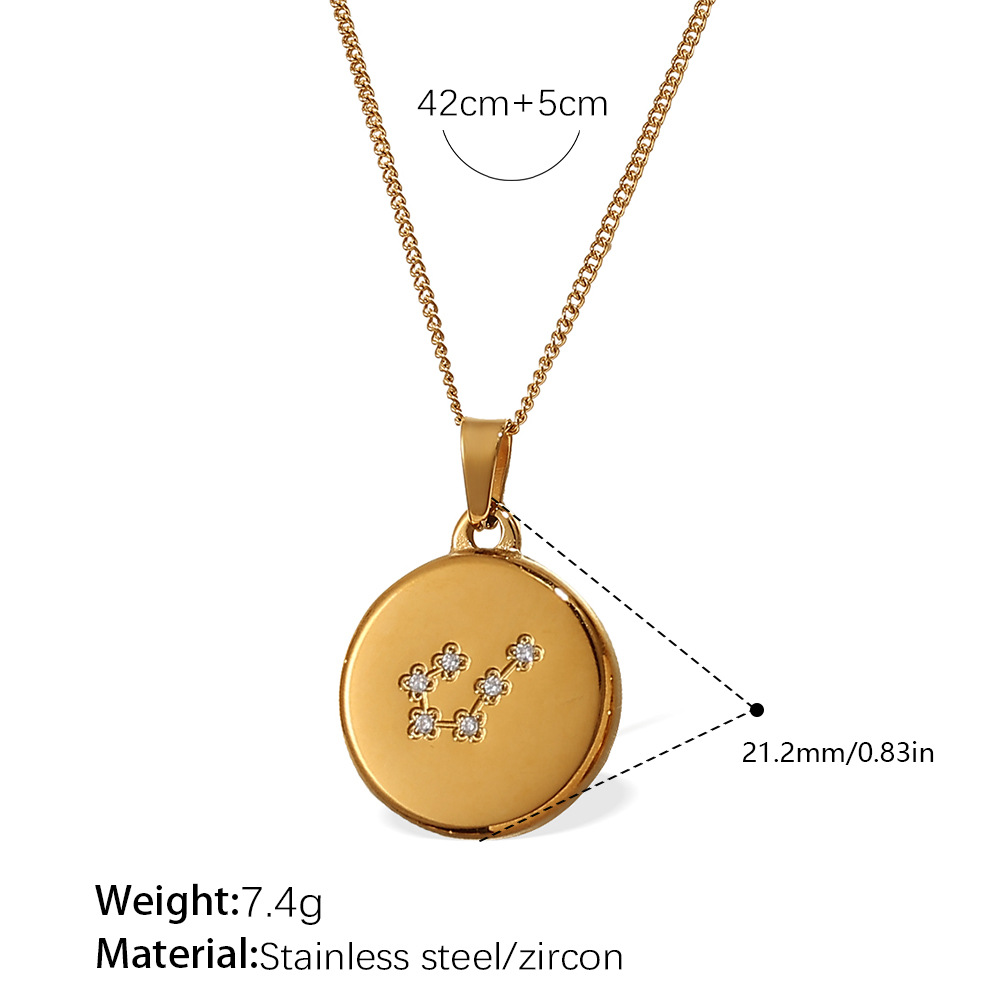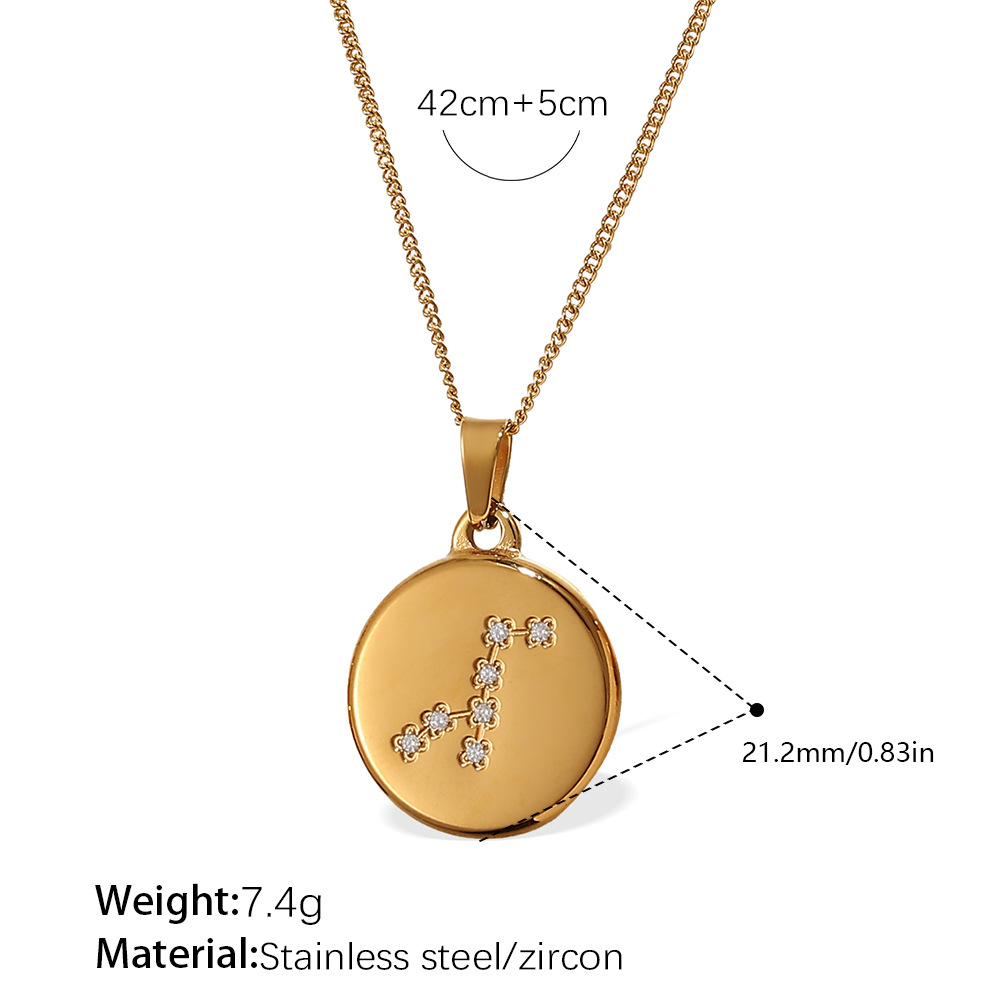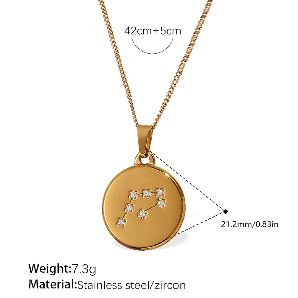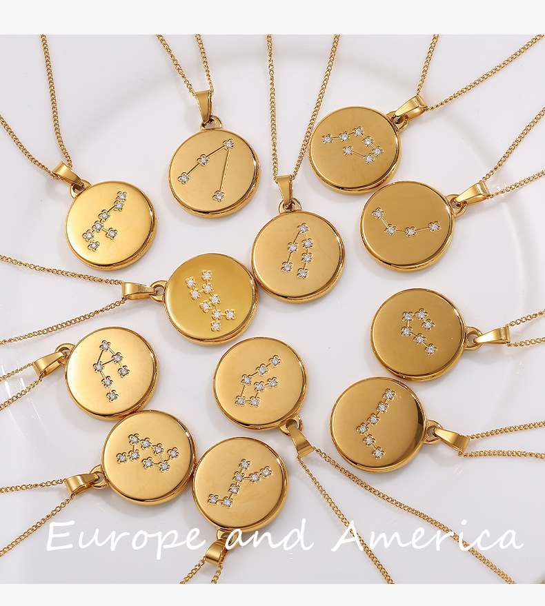 Colors: XL444WEG1 Aquarius gold necklace, XL444WEG2 Pisces gold necklace, XL444WEG3 Aries gold necklace, XL444WEG4 Taurus gold necklace, XL444WEG5 Gemini gold necklace, XL444WEG6 Cancer gold necklace, XL444WEG7 Leo gold necklace, XL444WEG8 Virgo gold necklace, XL444WEG9 Libra gold necklace, XL444WEG10 Scorpio gold necklace, XL444WEG11 Sagittarius gold necklace, XL444WEG12 Capricorn gold necklace