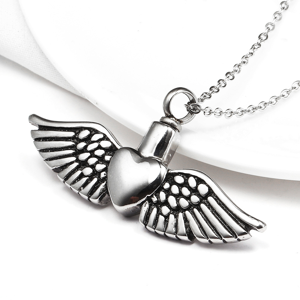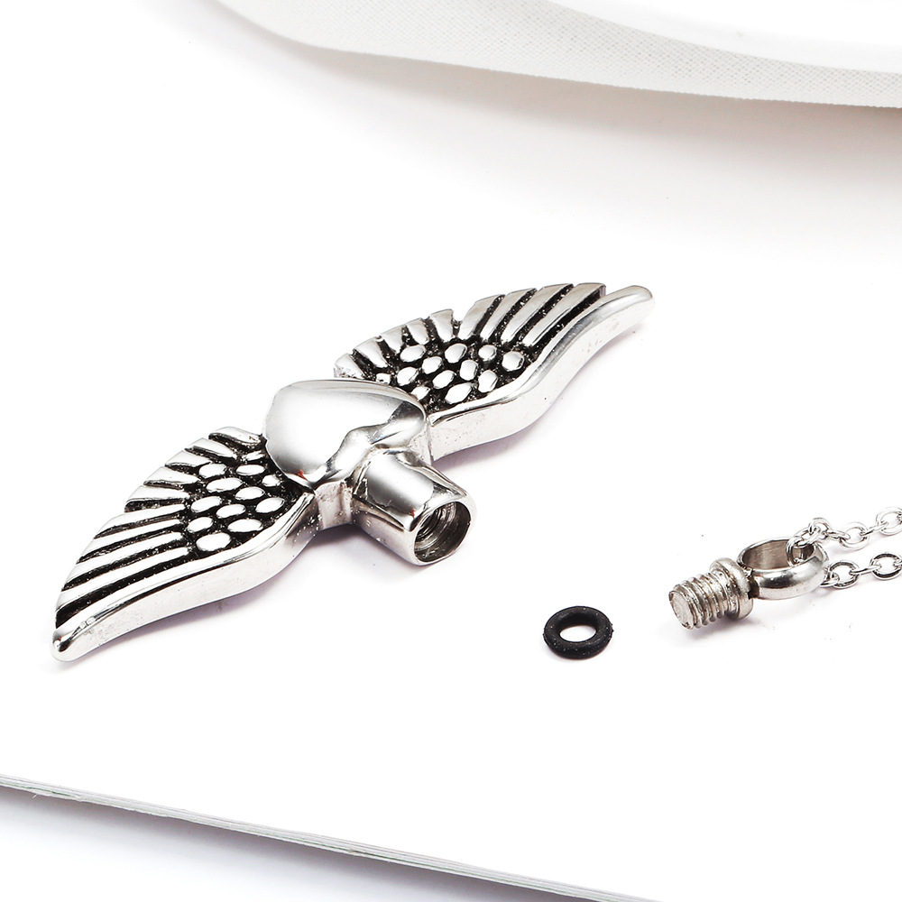 Stainless Steel Perfume Essential Oil Bottle Necklace Accessories Angel Wing Pendant