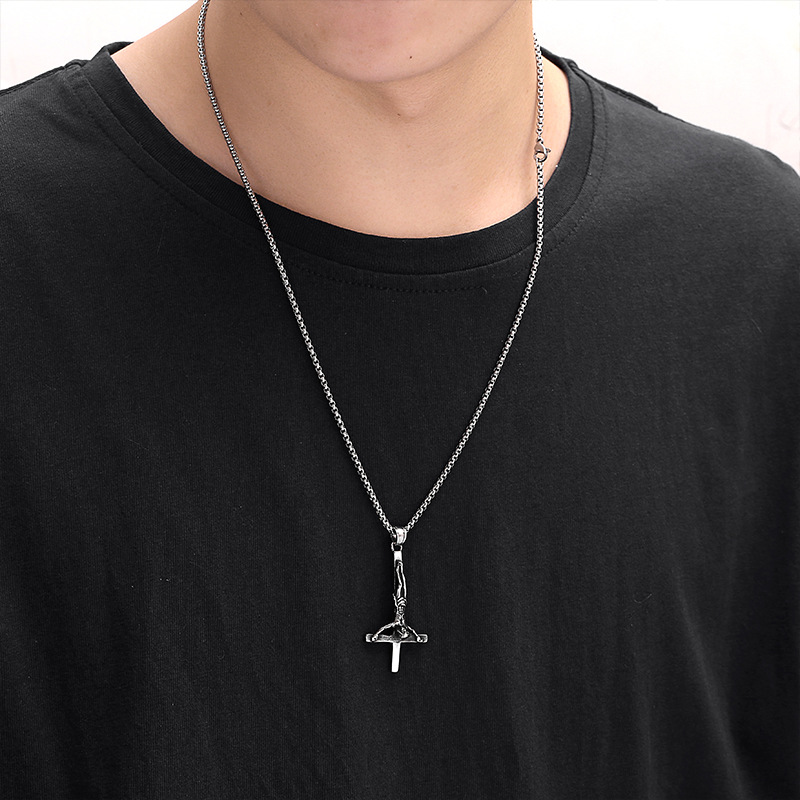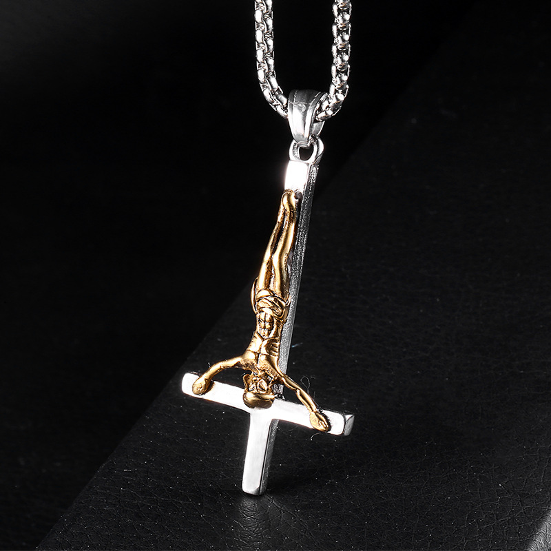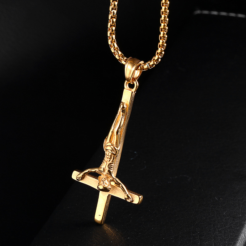 Stainless Steel Personalized Pendant Redemption Inverted Cross Charm Titanium Steel Men's And Women's Necklaces