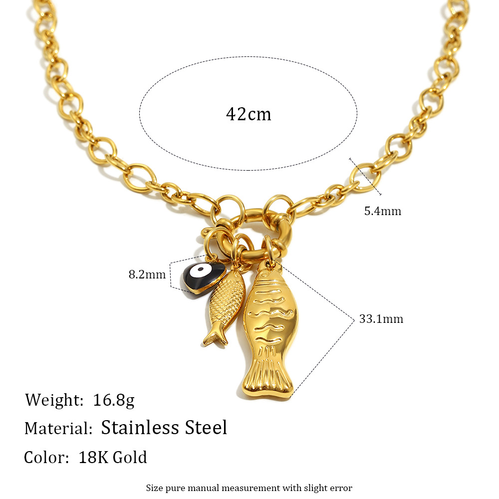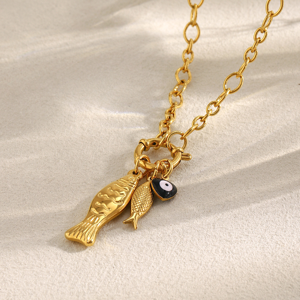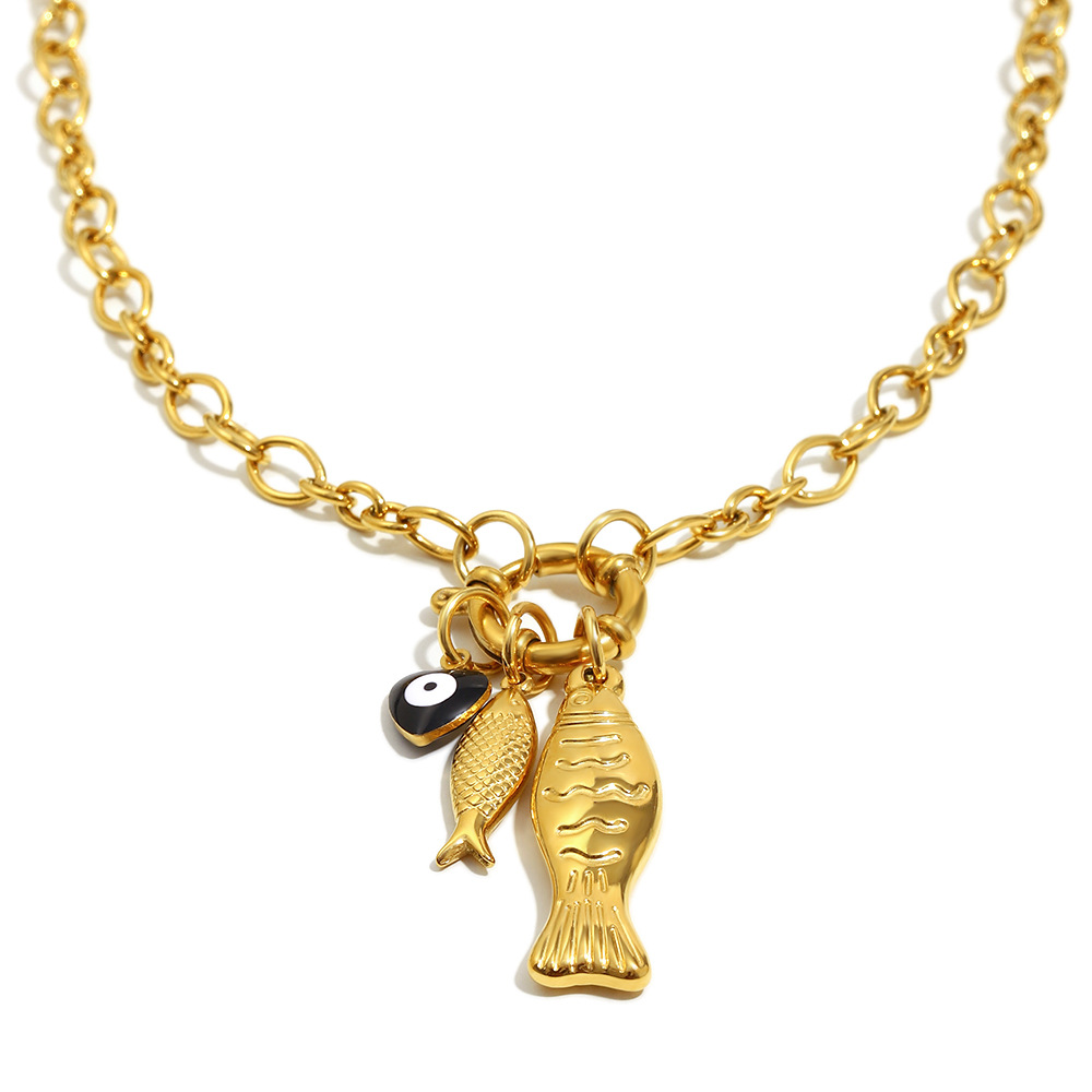 Color: irregular chain little fish spring fastener pendant necklace-Gold
