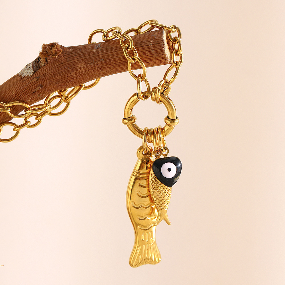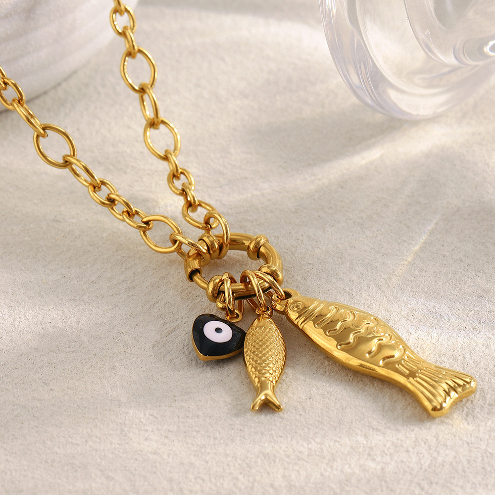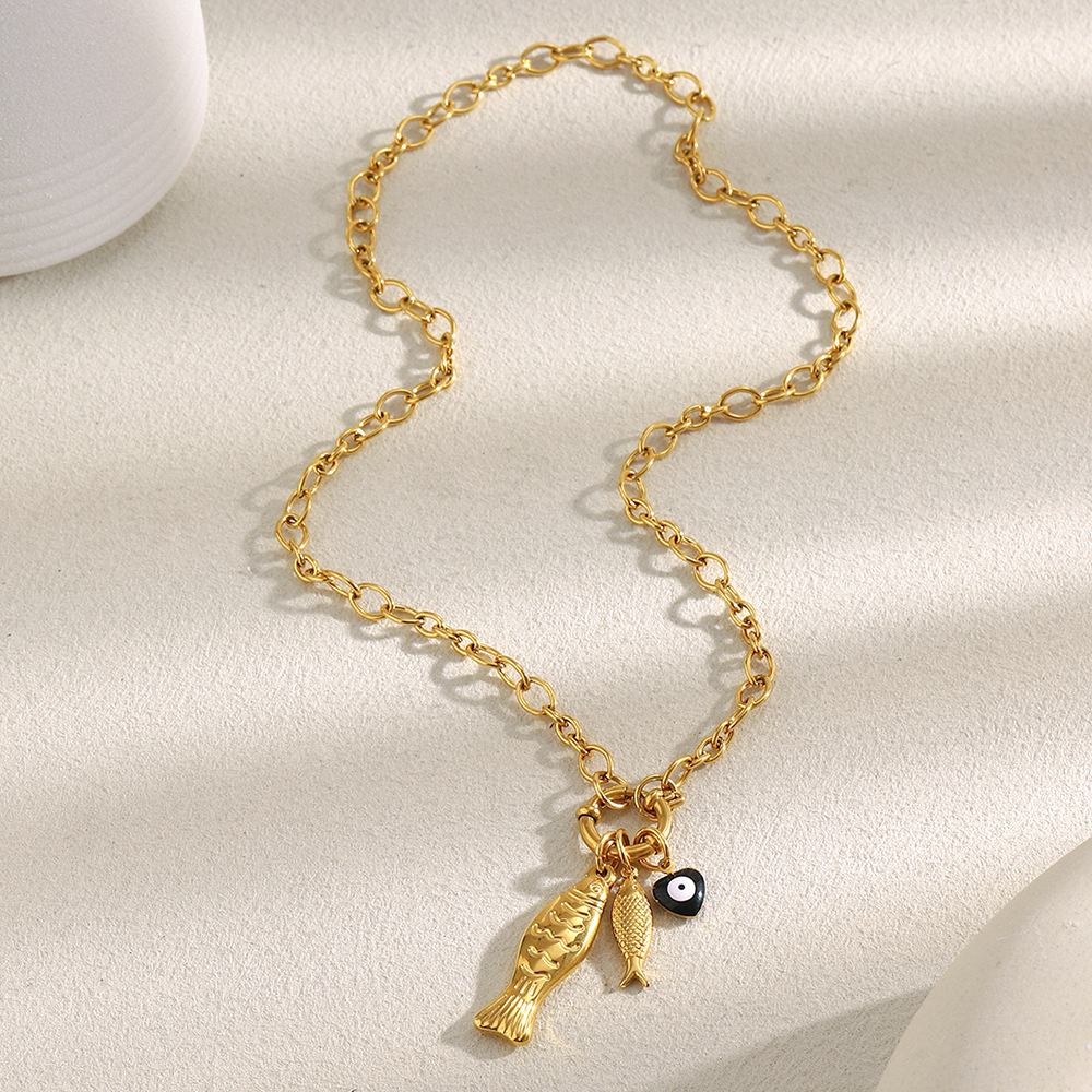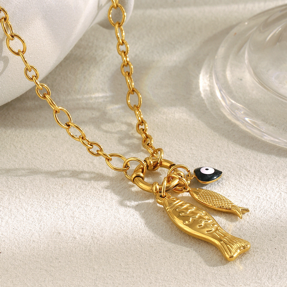 Color: irregular chain little fish spring fastener pendant necklace-Gold