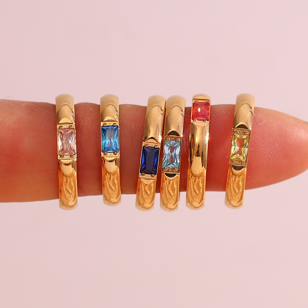 Stainless Steel Plated 18K Gold Rectangular Zircon Birthstones Ring