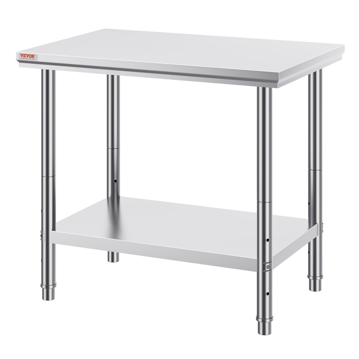 Stainless Steel Prep Table, 35 X 24 X 31 Inch, 700 Lbs Load Capacity, Heavy Duty Metal Worktable With 3 Adjustable Height Levels, Commercial Workstation For Kitchen Garage Restaurant