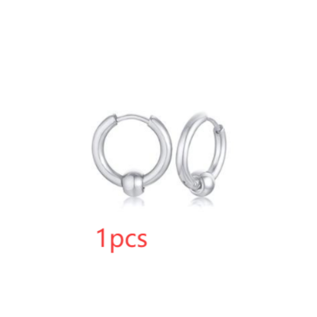Stainless Steel Round Bead Earrings Simple Men's Earrings