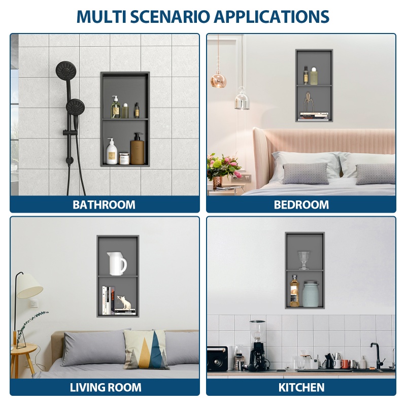 Versatile Use: More than just for the bathroom! This niche can also be used in kitchens, bookshelves, cupboards, and other areas of your home, providing flexible storage.
