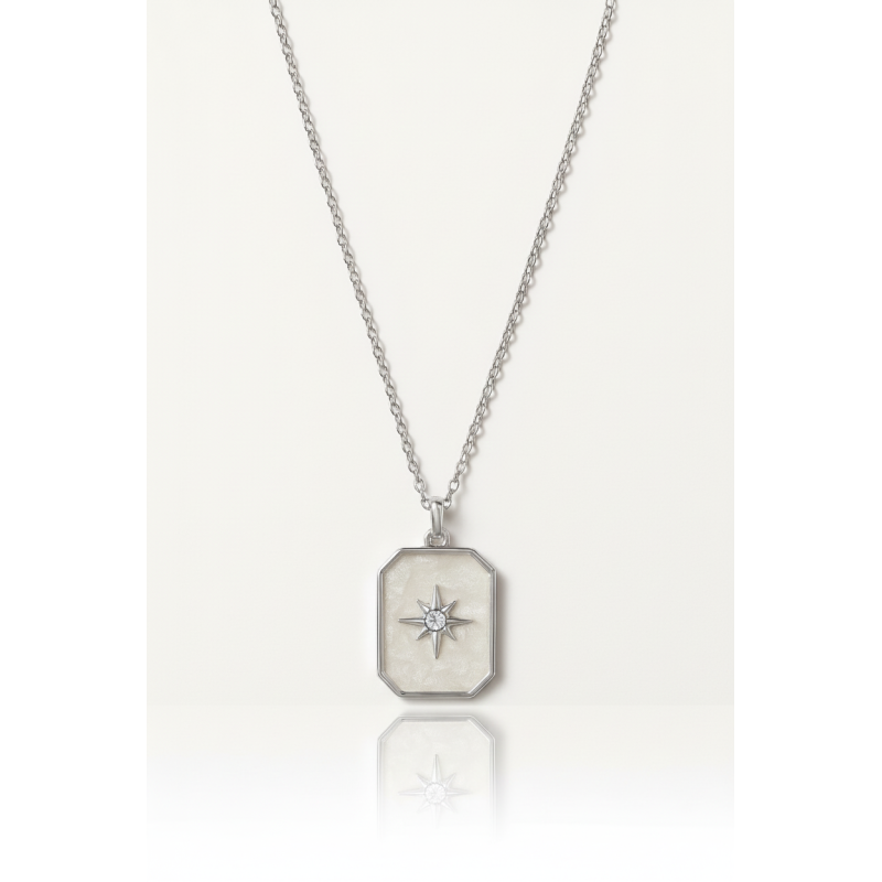 This stainless steel silver North Star necklace offers a timeless and elegant accessory for daily wear or special occasions. The polished finish provides lasting shine and resistance to tarnishing while the North Star pendant adds a symbolic and stylish touch. Its lightweight structure ensures comfort throughout the day and its minimalist design suits both casual and modern outfits. A thoughtful gift choice for women who appreciate refined and meaningful jewelry.