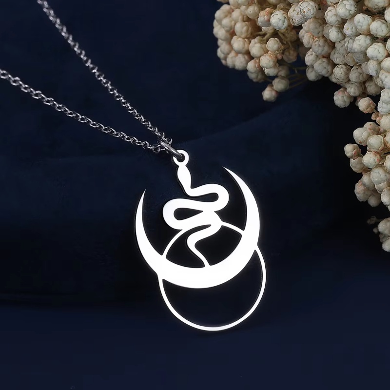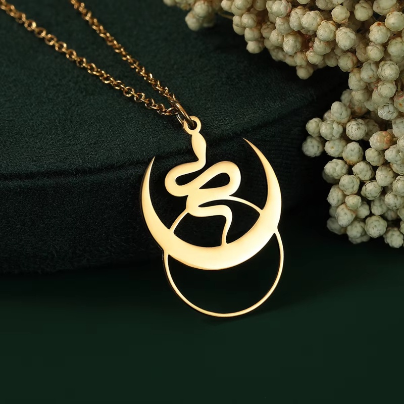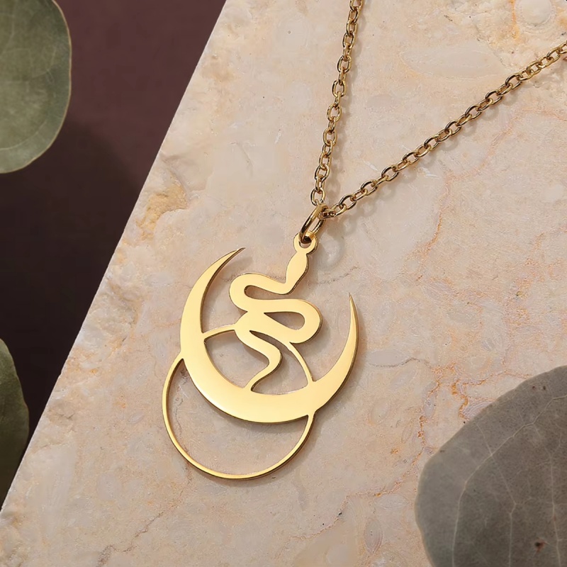Stainless Steel Snake And Moon Personalized Necklace Pendant