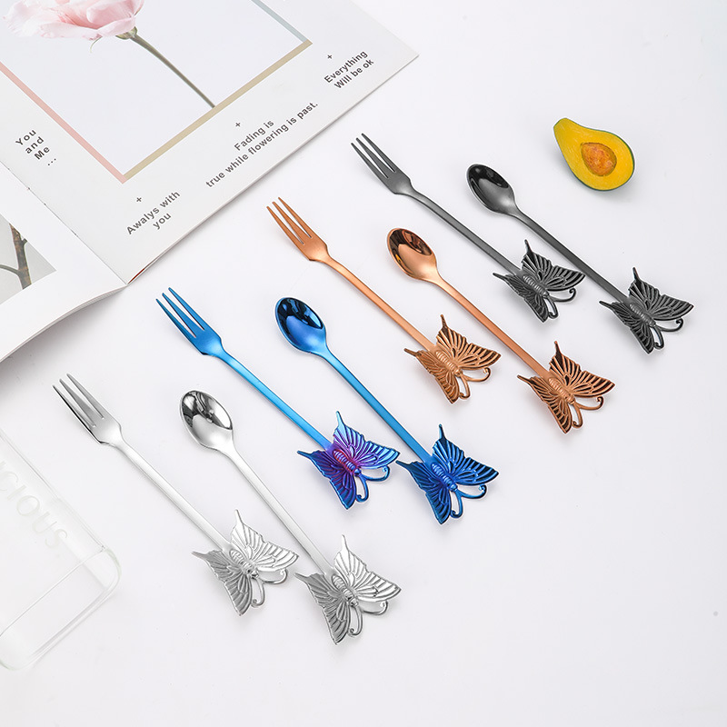 Color: silver fork, silver spoon, golden fork, golden spoon, rose gold fork, rose gold spoon, color fork, color spoon, black fork, black spoon